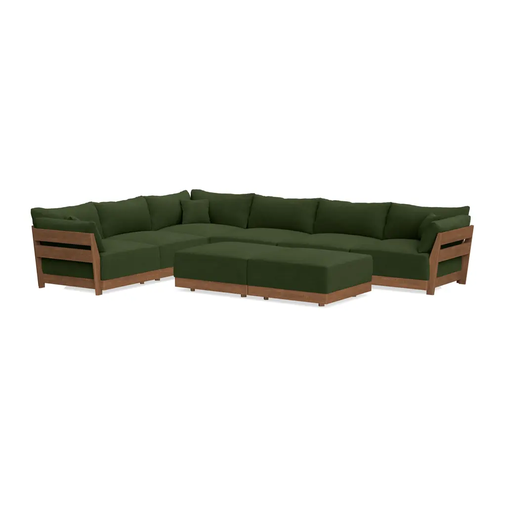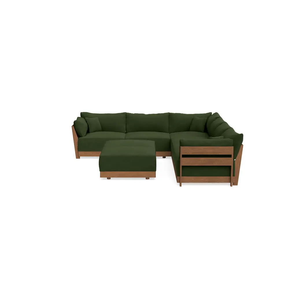 Modular Bondi Espresso 6-Seater Corner Sectional + Bench Ottoman In Tuscan Green | Classic Blend