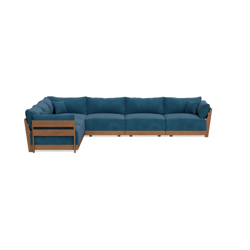 Modular Bondi Espresso 6-Seater Corner Sectional + Ottoman In Commodore Blue | Memory Foam Blend