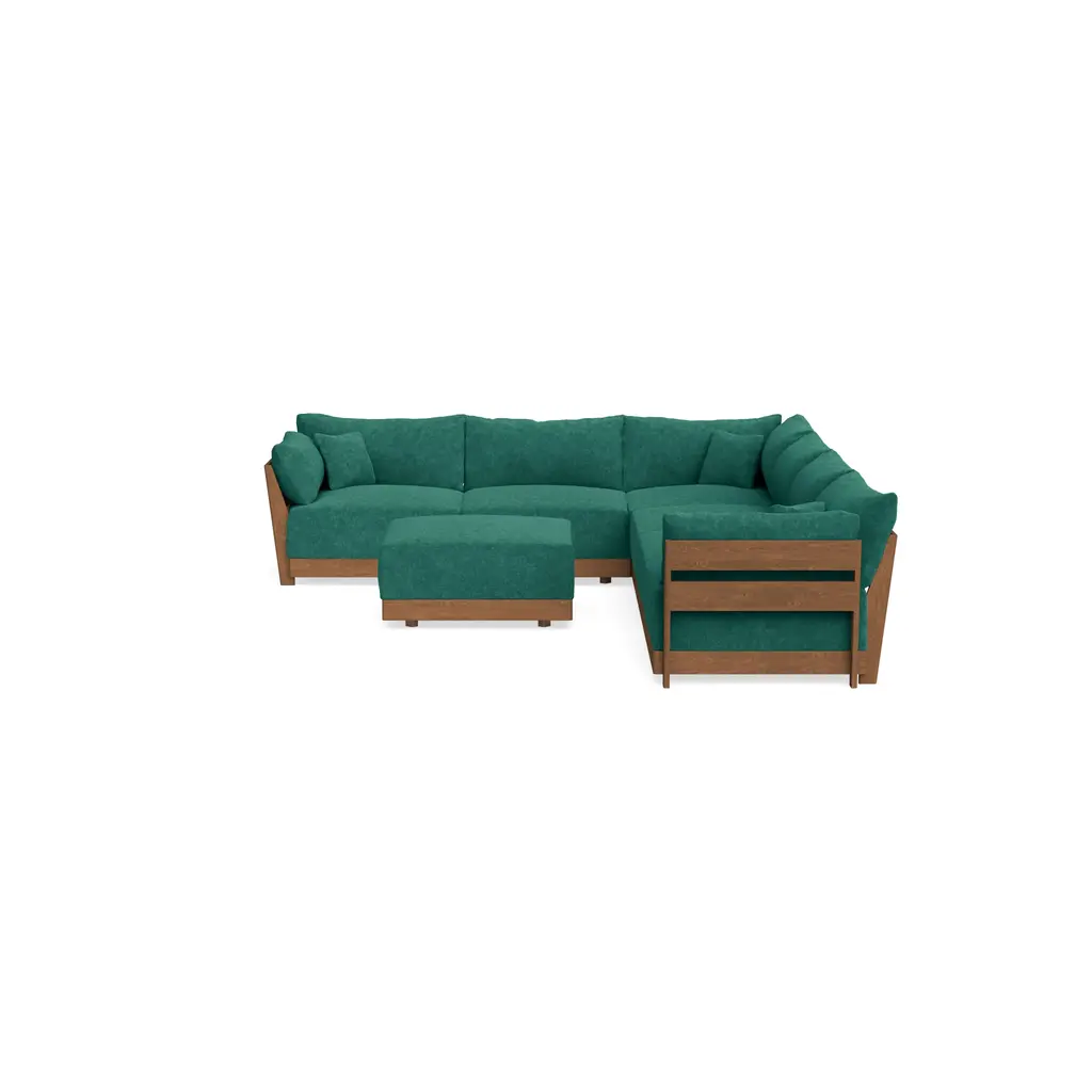 Modular Bondi Espresso 6-Seater Corner Sectional + Ottoman In Jade Green | Classic Blend