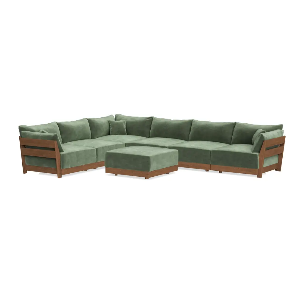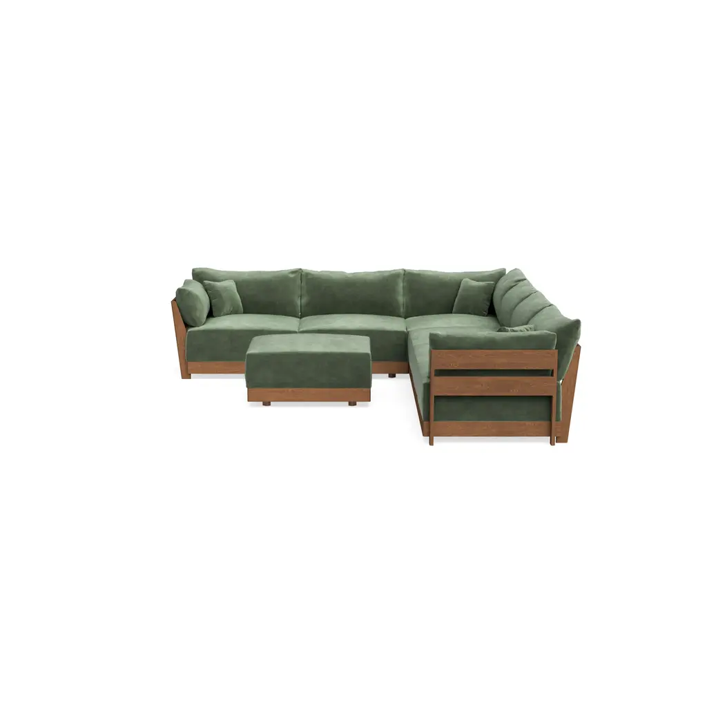 Modular Bondi Espresso 6-Seater Corner Sectional + Ottoman In Rosemary | Memory Foam Blend