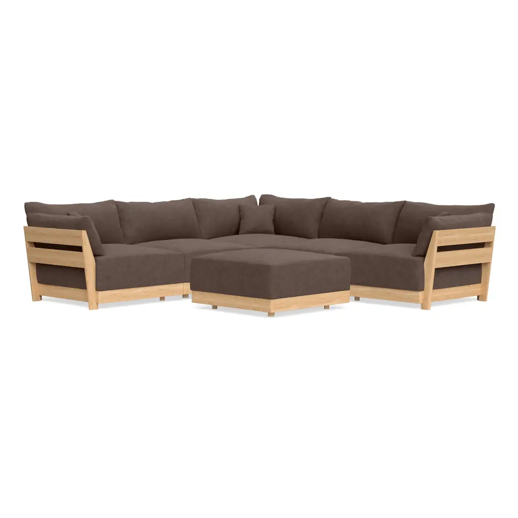 Modular Bondi Latte 5-Seater Corner Sectional + Ottoman In Chocolate | Classic Blend