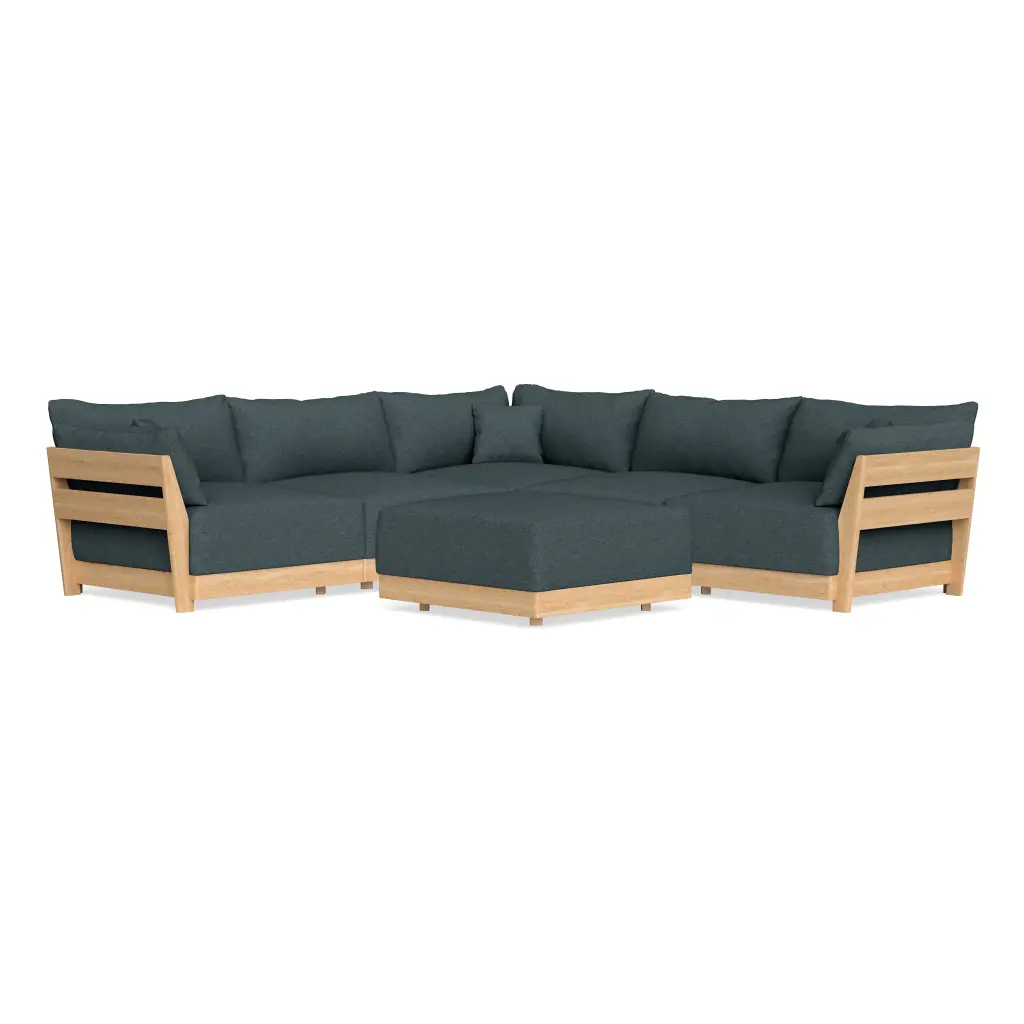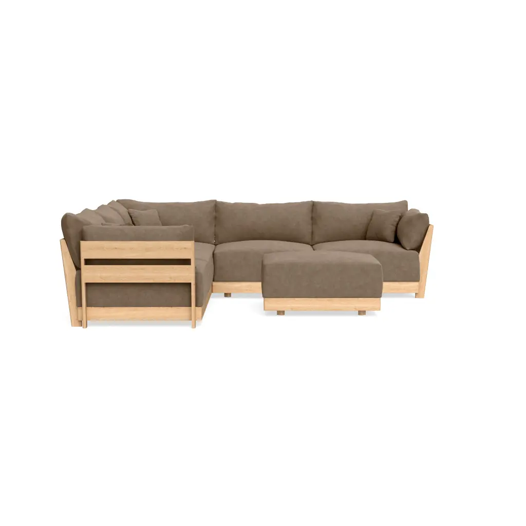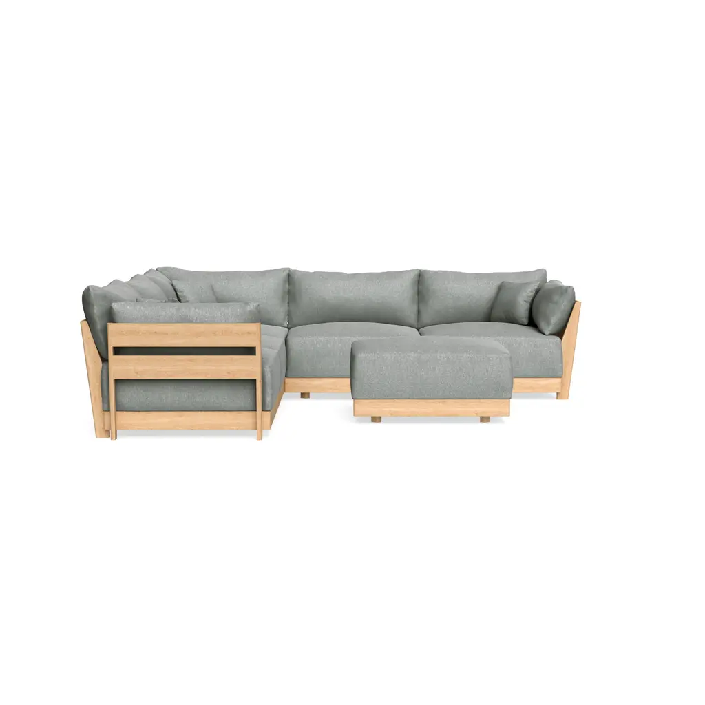 Modular Bondi Latte 5-Seater Corner Sectional + Ottoman In Ocean Gray | Memory Foam Blend