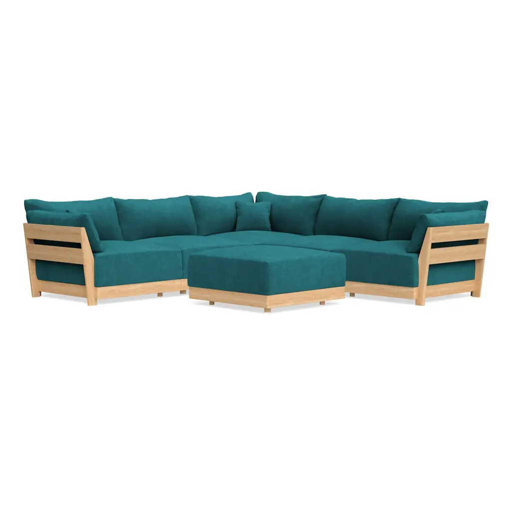 Modular Bondi Latte 5-Seater Corner Sectional + Ottoman In Ocean | Memory Foam Blend