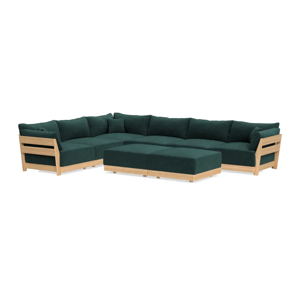Modular Bondi Latte 6-Seater Corner Sectional + Bench Ottoman In Harbor Blue | Classic Blend