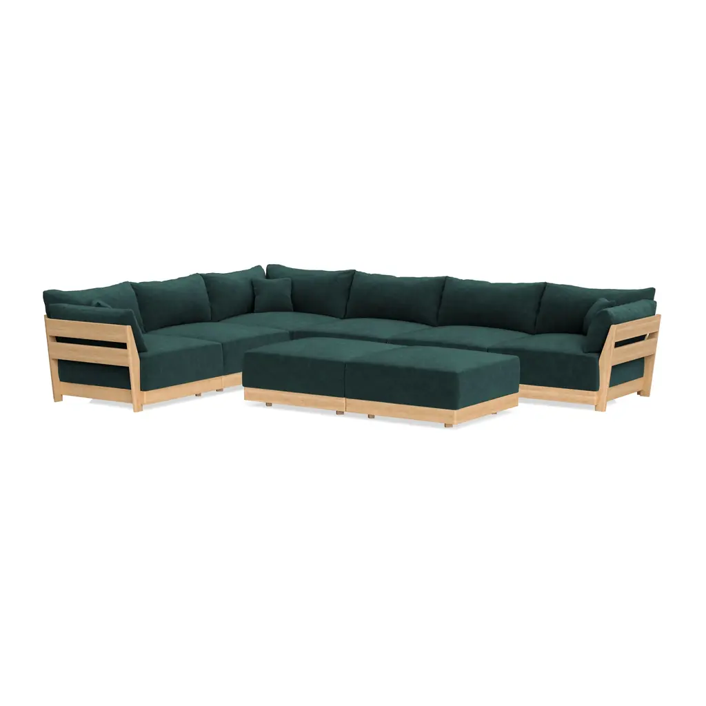 Modular Bondi Latte 6-Seater Corner Sectional + Bench Ottoman In Harbor Blue | Memory Foam Blend
