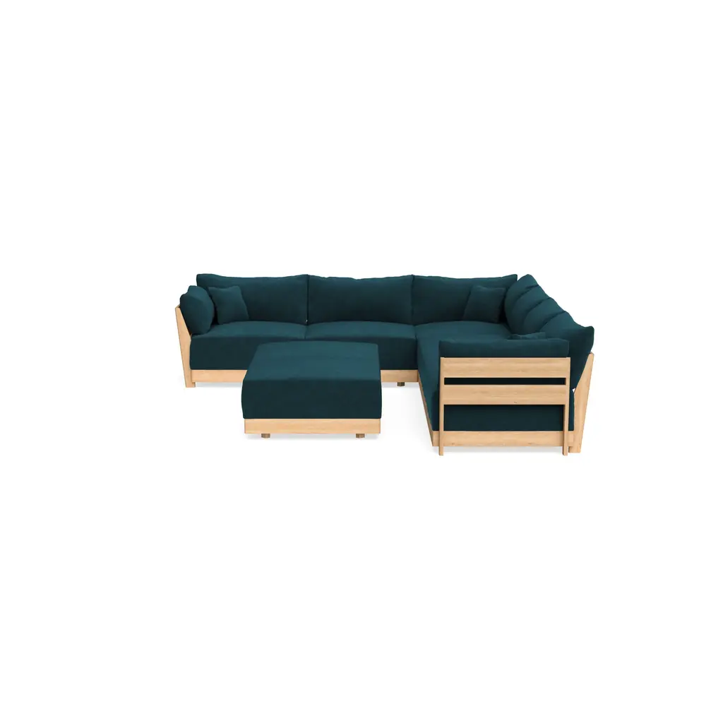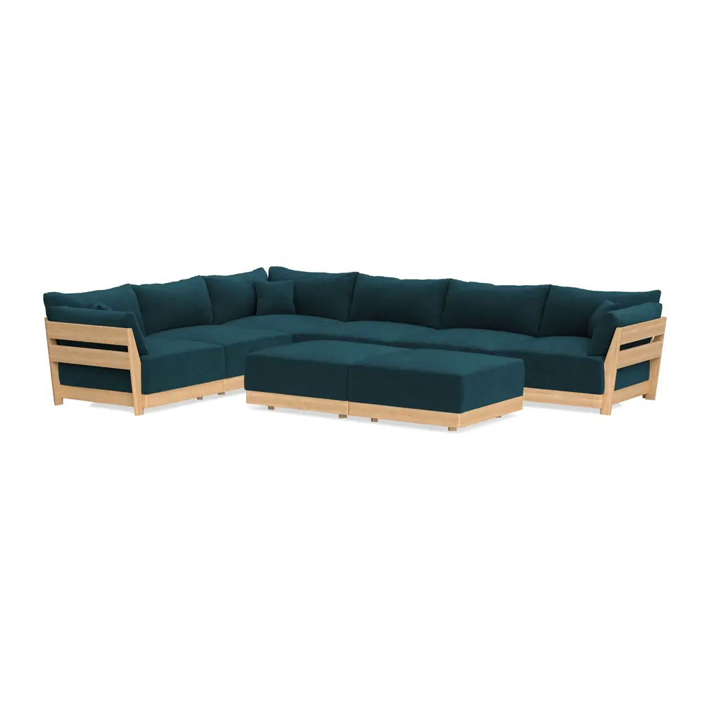 Modular Bondi Latte 6-Seater Corner Sectional + Bench Ottoman In Indigo | Memory Foam Blend