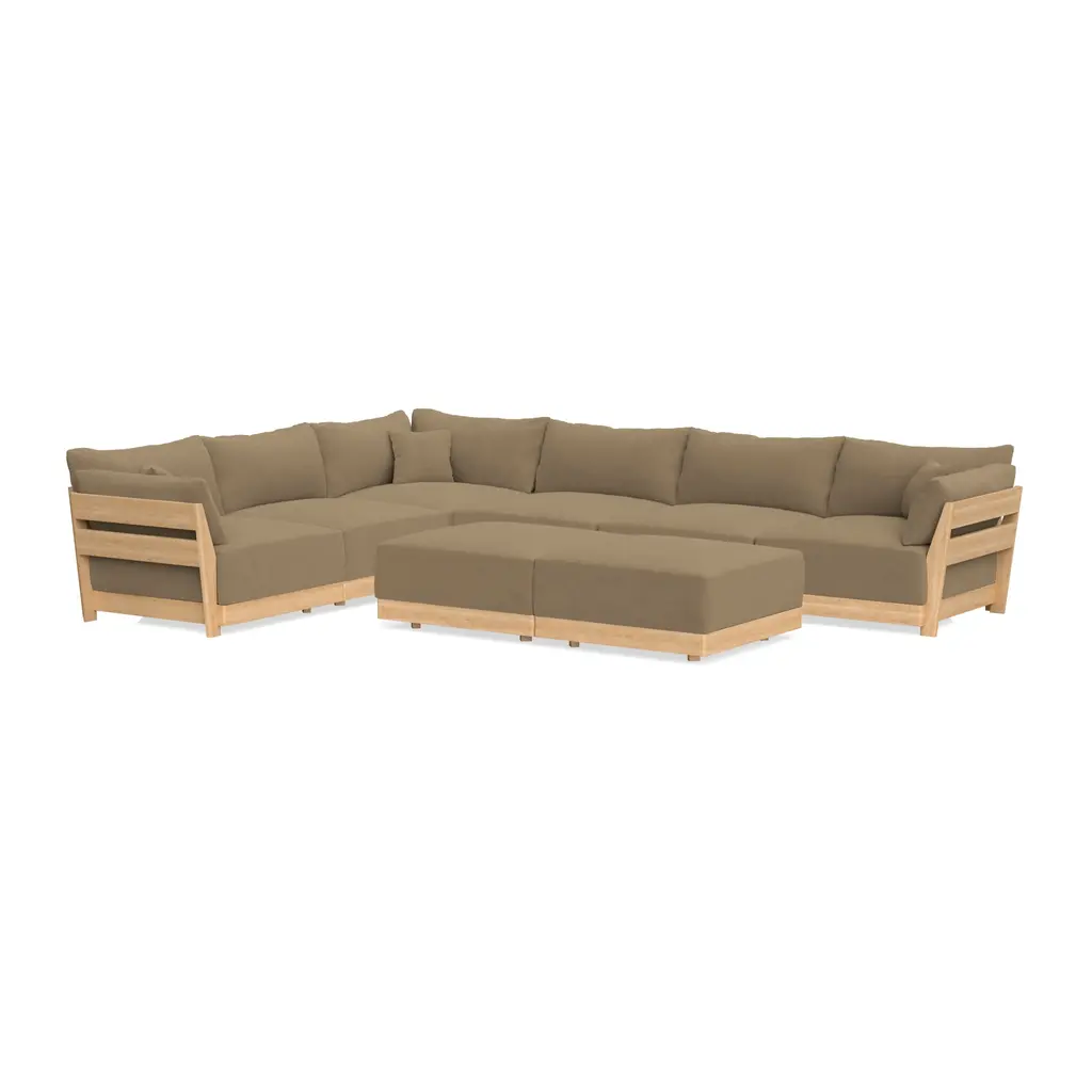 Modular Bondi Latte 6-Seater Corner Sectional + Bench Ottoman In Macchiato | Memory Foam Blend