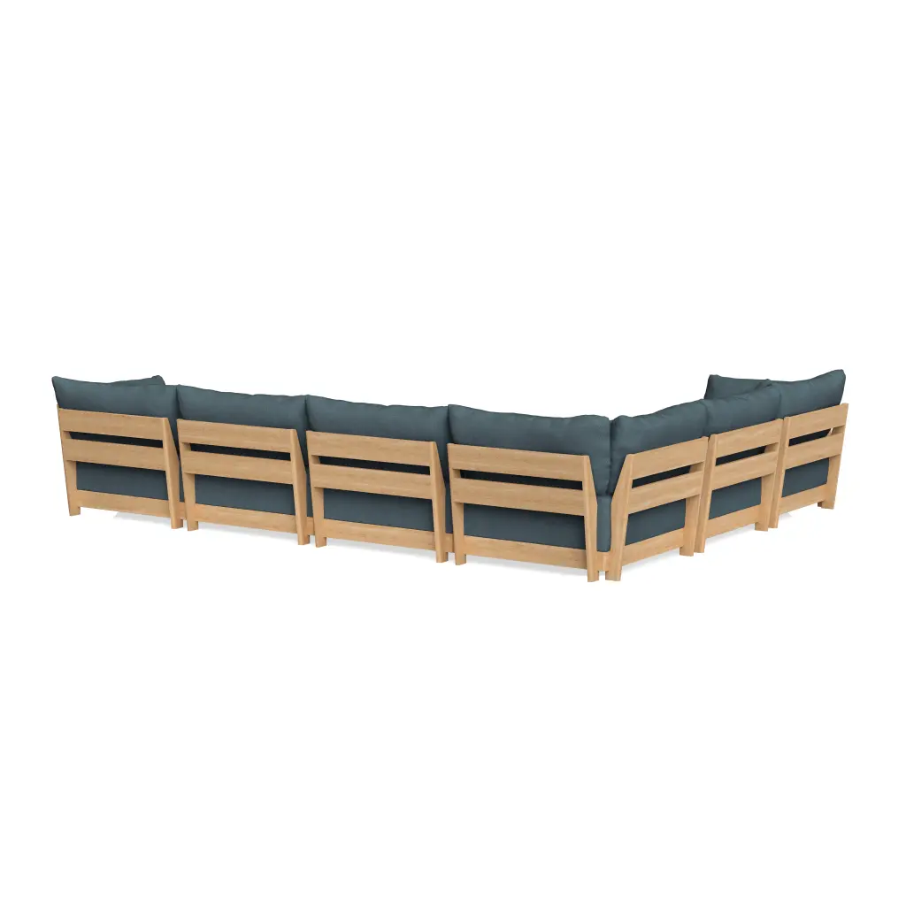 Modular Bondi Latte 6-Seater Corner Sectional + Bench Ottoman In Slate Blue | Classic Blend
