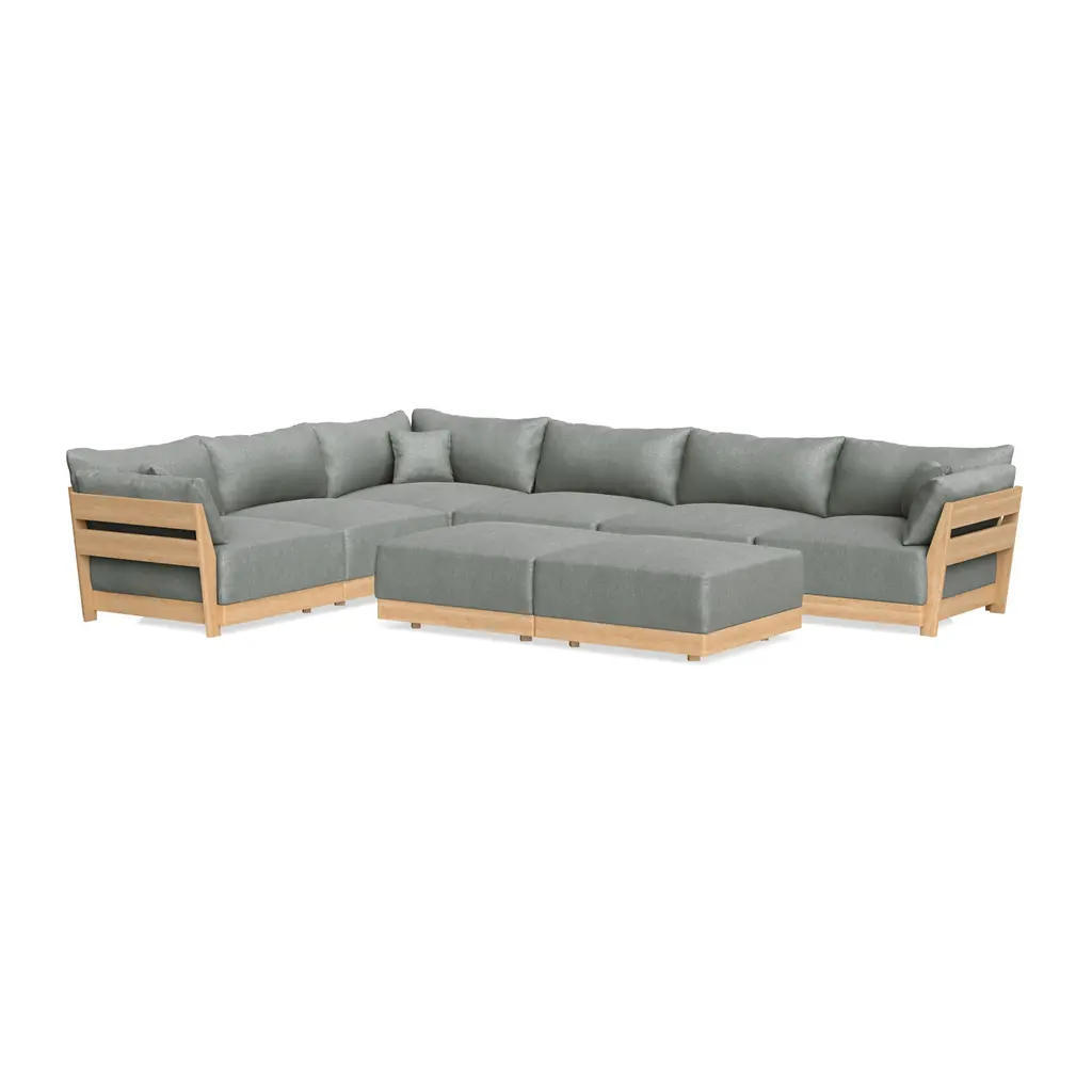 Modular Bondi Latte 6-Seater Corner Sectional + Bench Ottoman In Storm Gray | Memory Foam Blend