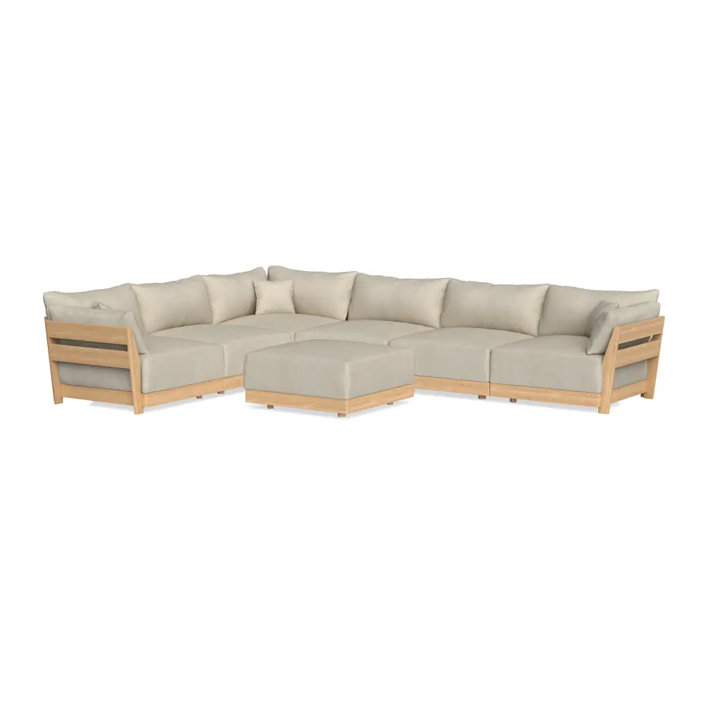 Modular Bondi Latte 6-Seater Corner Sectional + Ottoman In Almond | Classic Blend