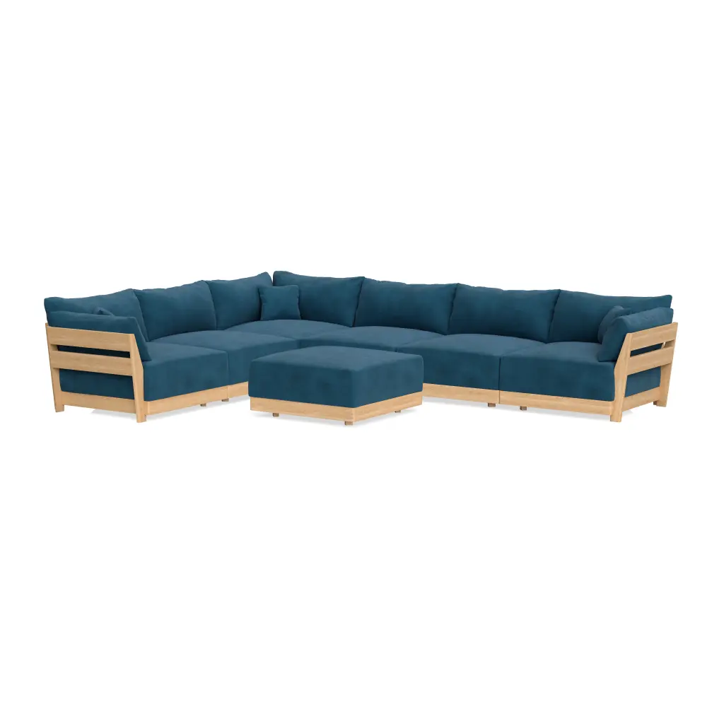 Modular Bondi Latte 6-Seater Corner Sectional + Ottoman In Commodore Blue | Classic Blend