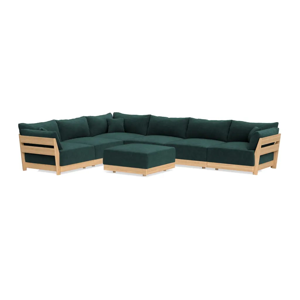 Modular Bondi Latte 6-Seater Corner Sectional + Ottoman In Harbor Blue | Classic Blend