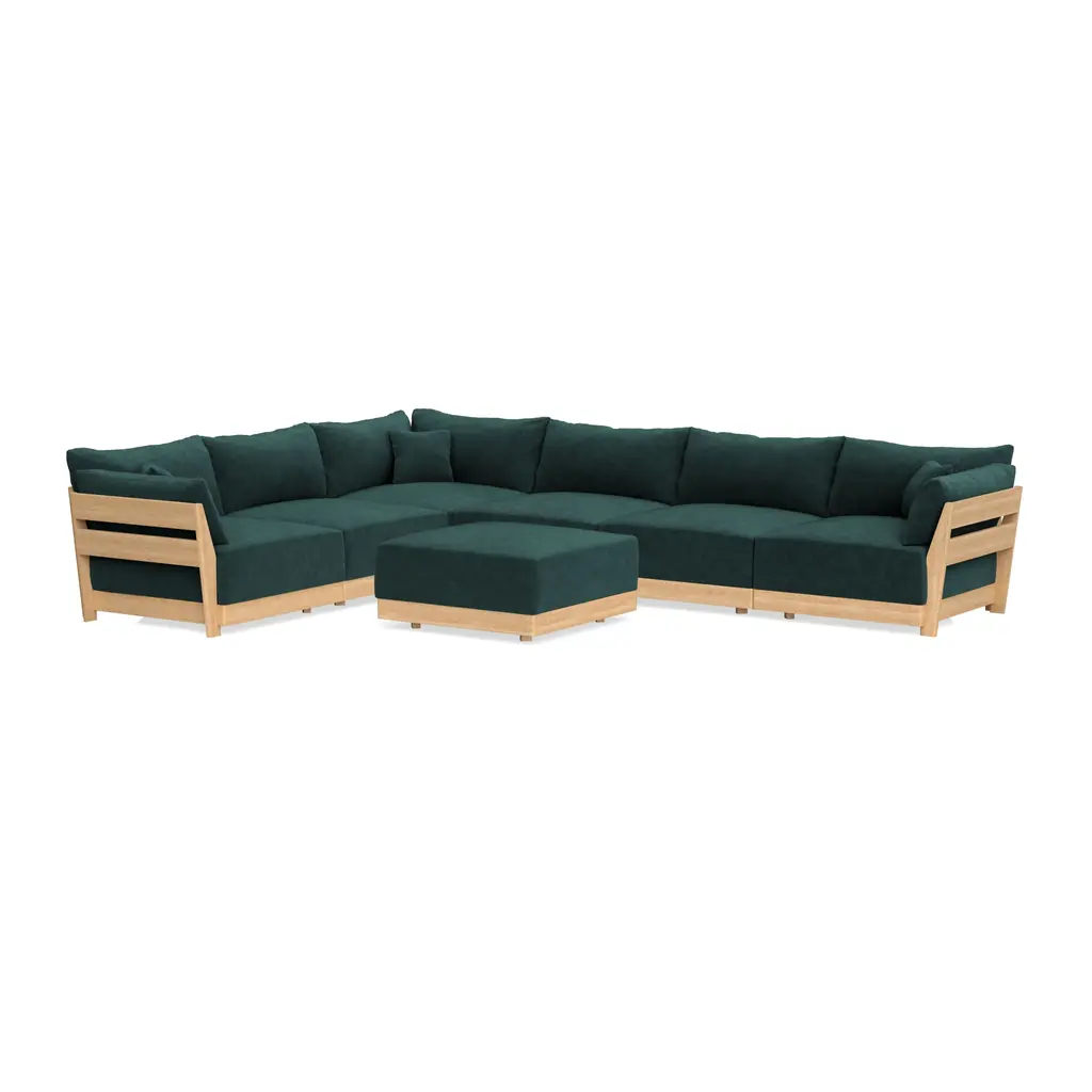 Modular Bondi Latte 6-Seater Corner Sectional + Ottoman In Harbor Blue | Memory Foam Blend