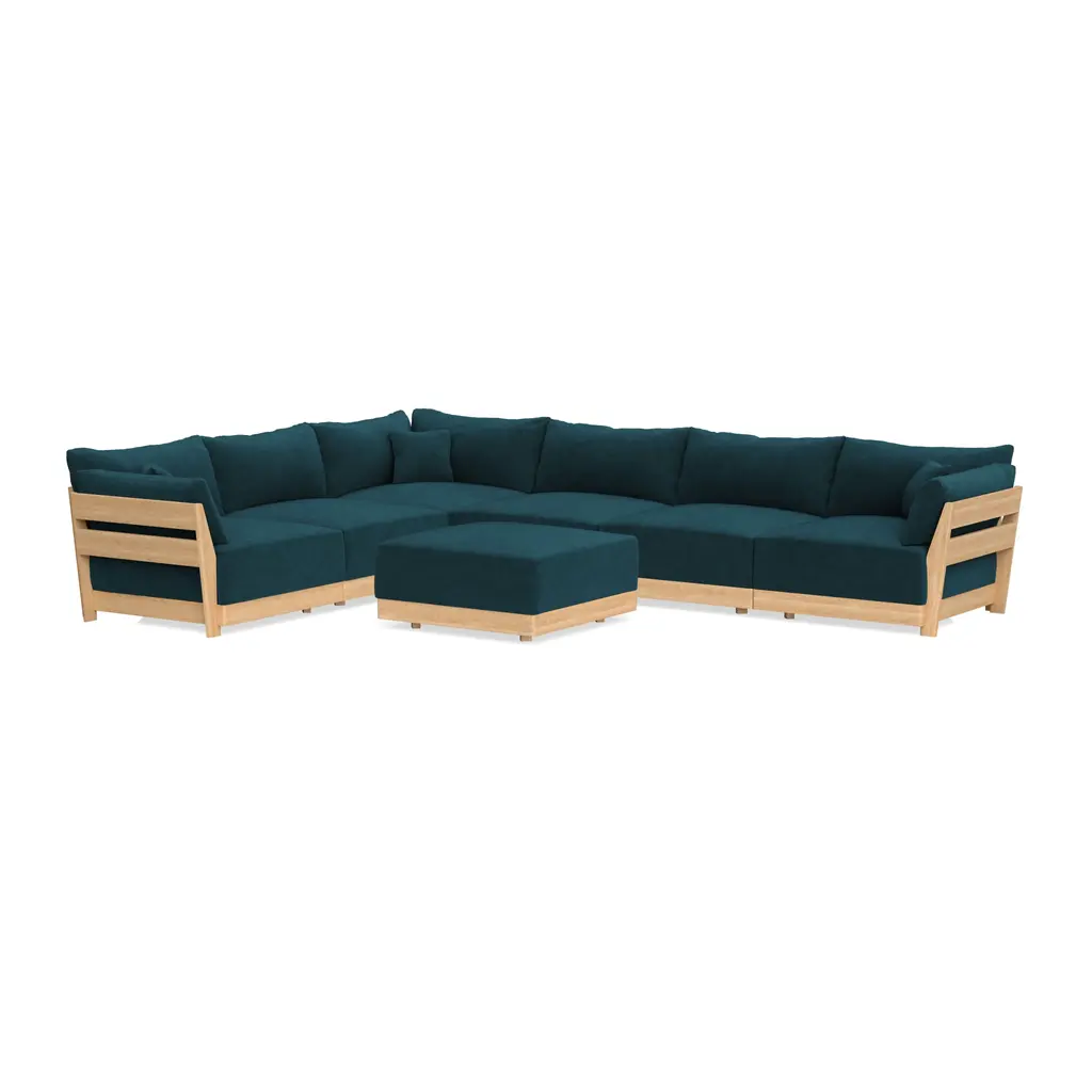 Modular Bondi Latte 6-Seater Corner Sectional + Ottoman In Indigo | Memory Foam Blend