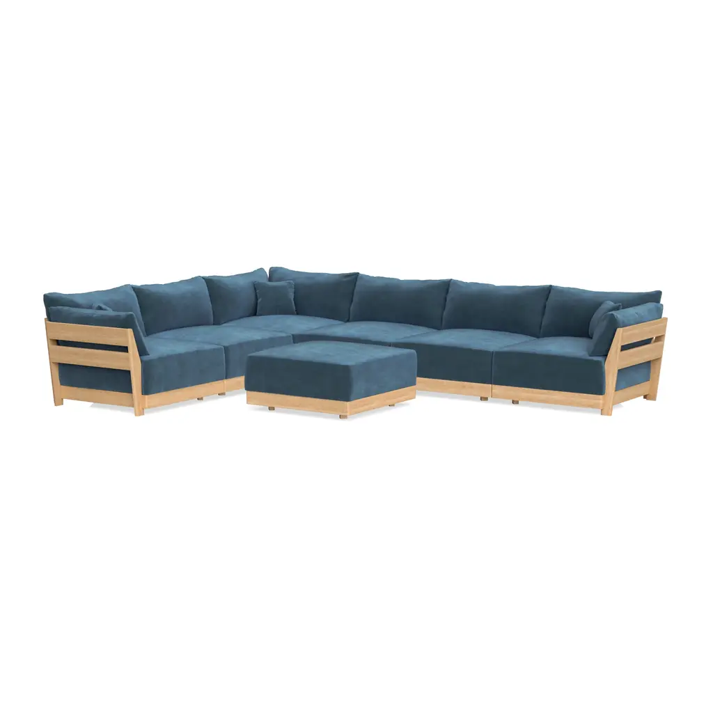 Modular Bondi Latte 6-Seater Corner Sectional + Ottoman In Oxford Blue | Classic Blend
