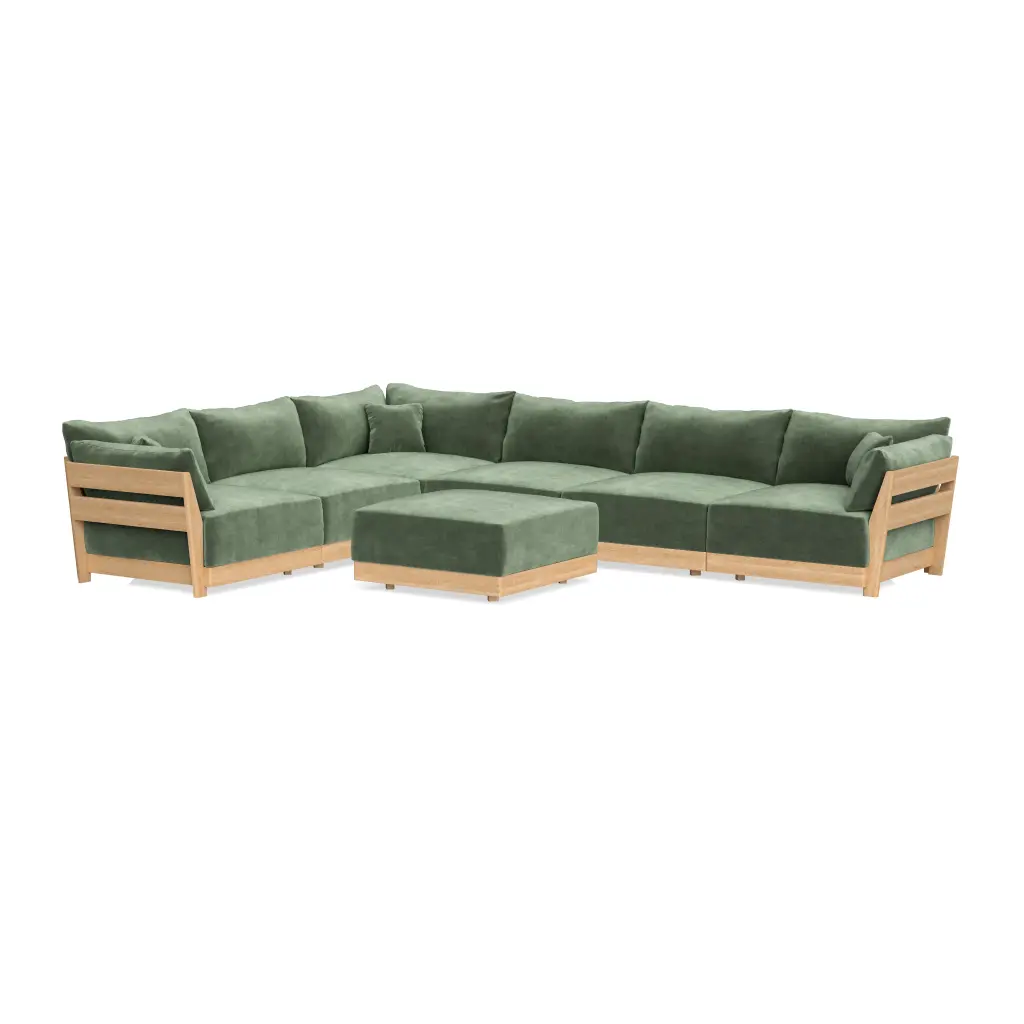 Modular Bondi Latte 6-Seater Corner Sectional + Ottoman In Rosemary | Classic Blend