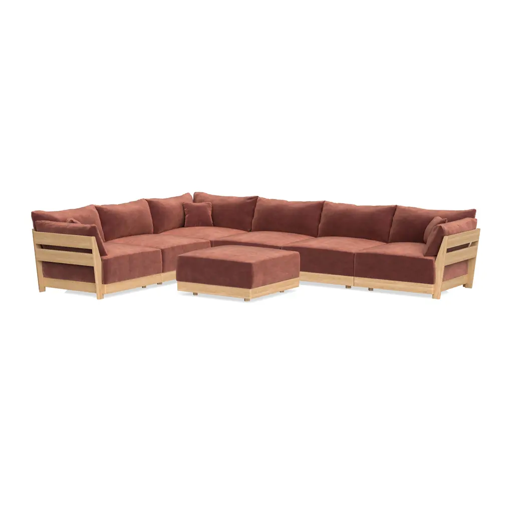 Modular Bondi Latte 6-Seater Corner Sectional + Ottoman In Spice | Memory Foam Blend