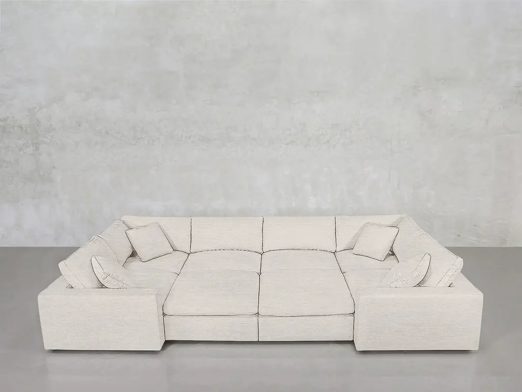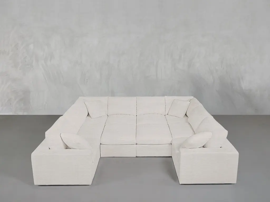 You don't need to sacrifice comfort and style when it comes to entertaining guests at your next movie or game night. Look no further than the 10-Seat Modular Closed Pit Sofa from 7th Avenue. You have room for up to ten people with this sectional, featuring a classic design that will fit seamlessly into any large living room or entertainment space. The center ottomans can be removed to create a u-sectional, or they can be attached to make the perfect Pit configuration. Snuggle up and getting cozy, you and your friends can enjoy hours of uninterrupted fun on this comfortable and inviting sofa. Whether you're catching up on your favorite TV shows or challenging each other to a game or two, this modular closed pit sofa is sure to make all your gatherings more enjoyable.