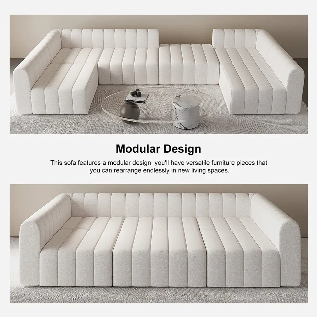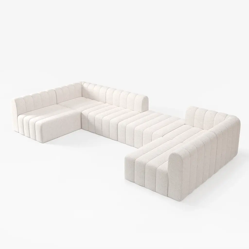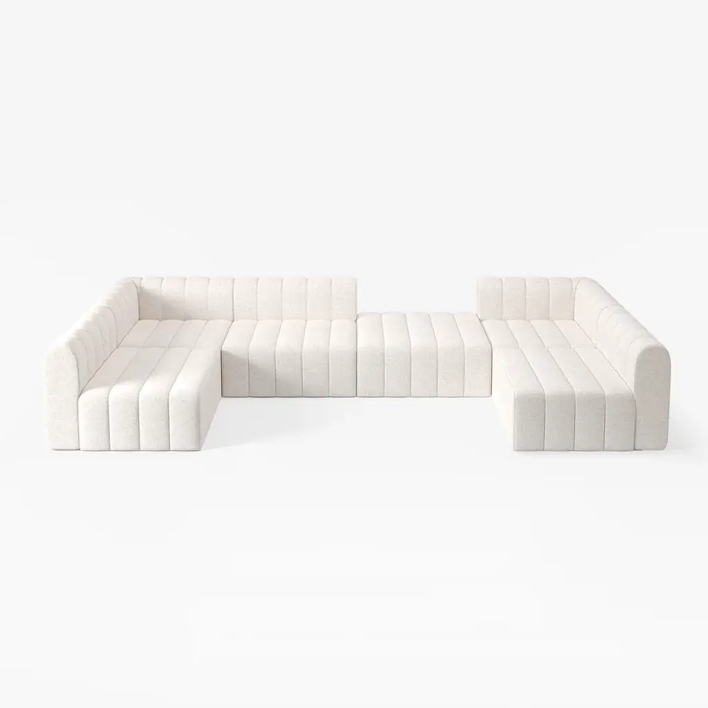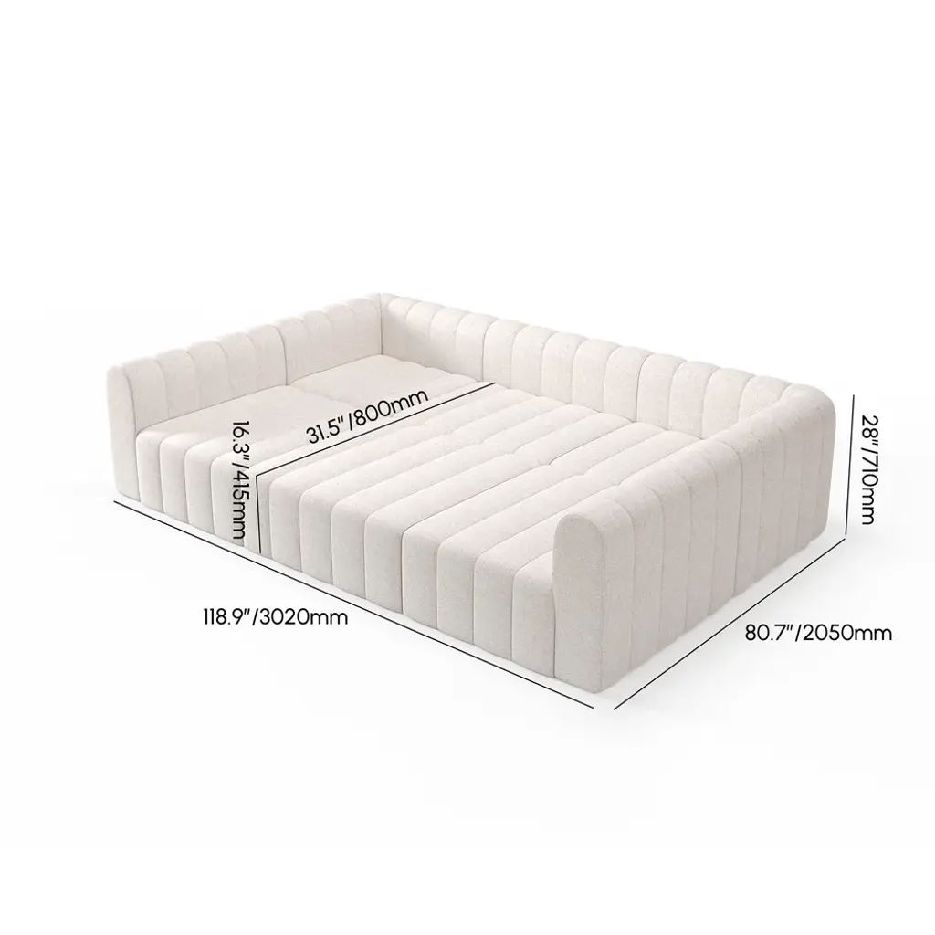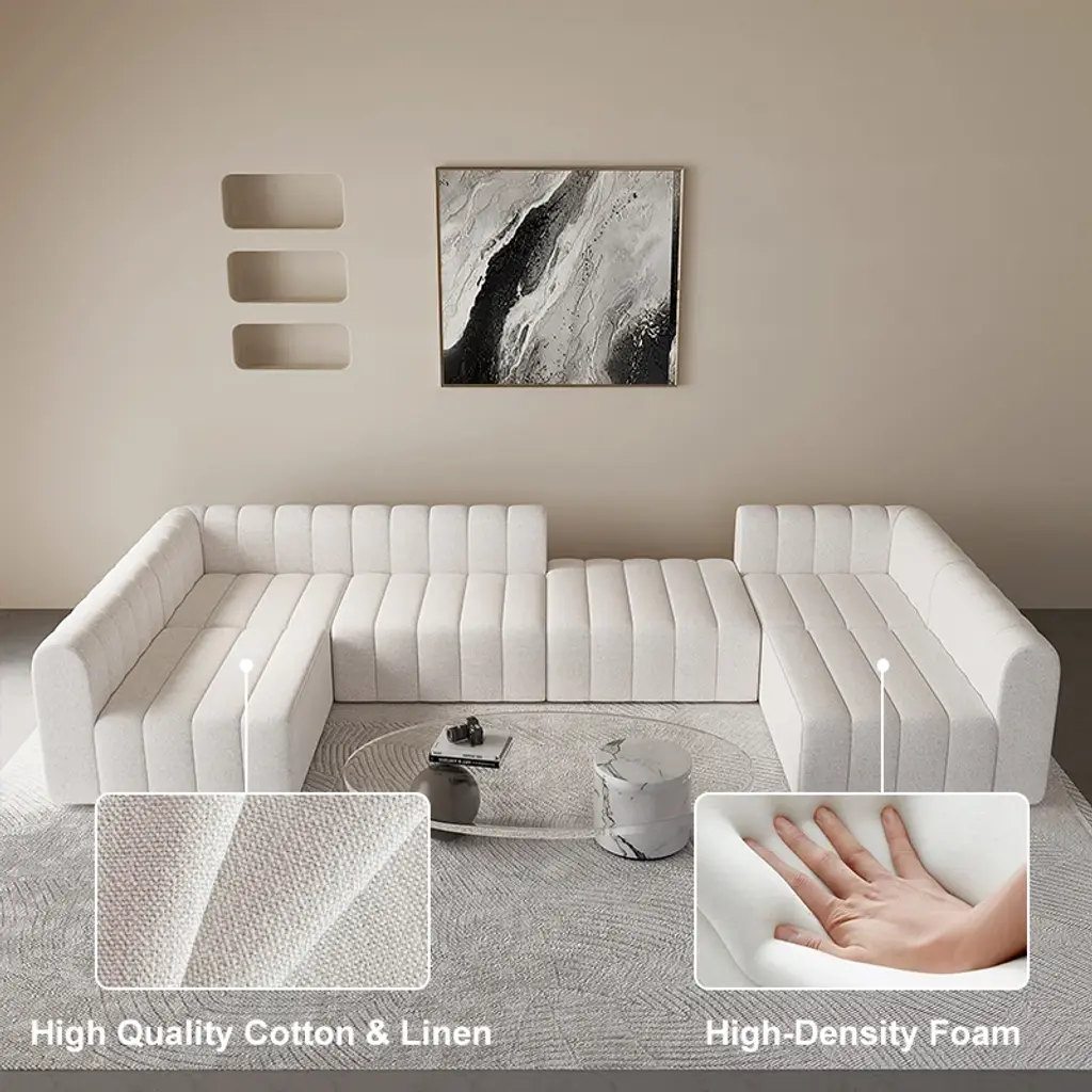 118.9" White Cotton Linen Modular Pit Sectional Sofa Set Convertible 6-Seater