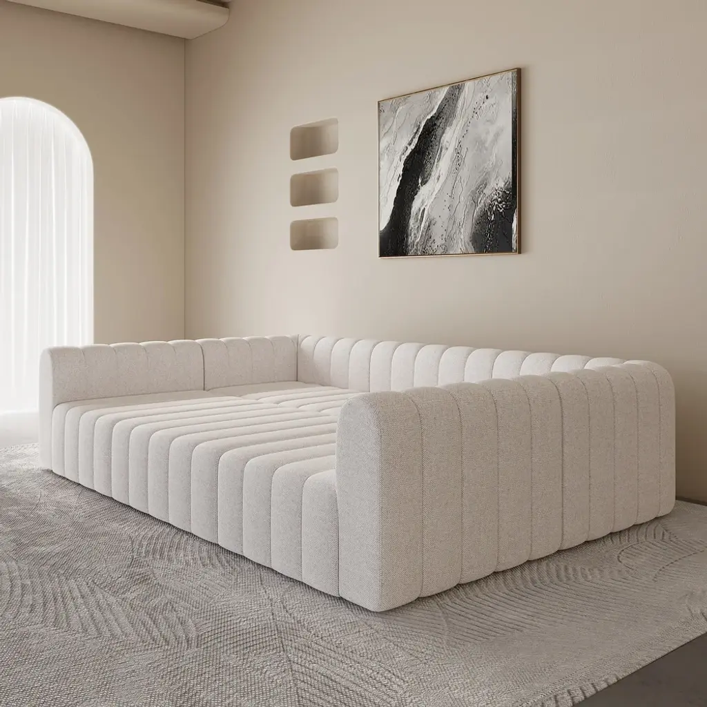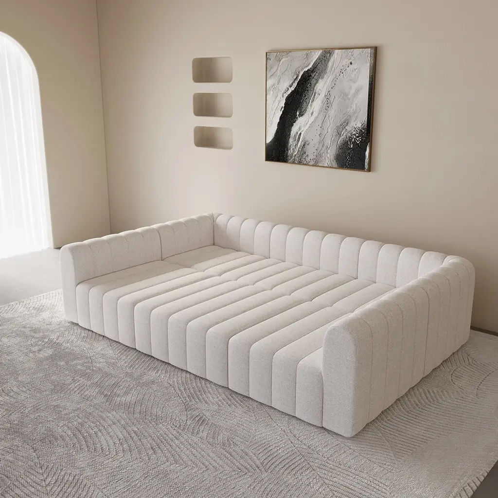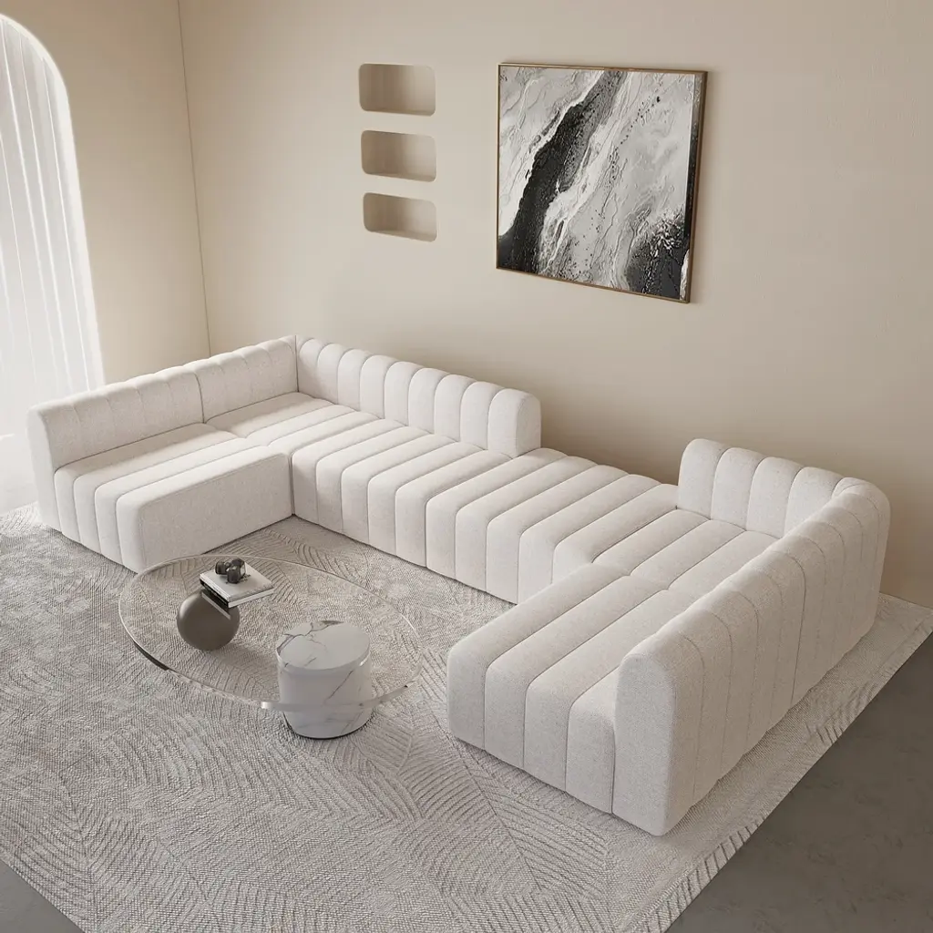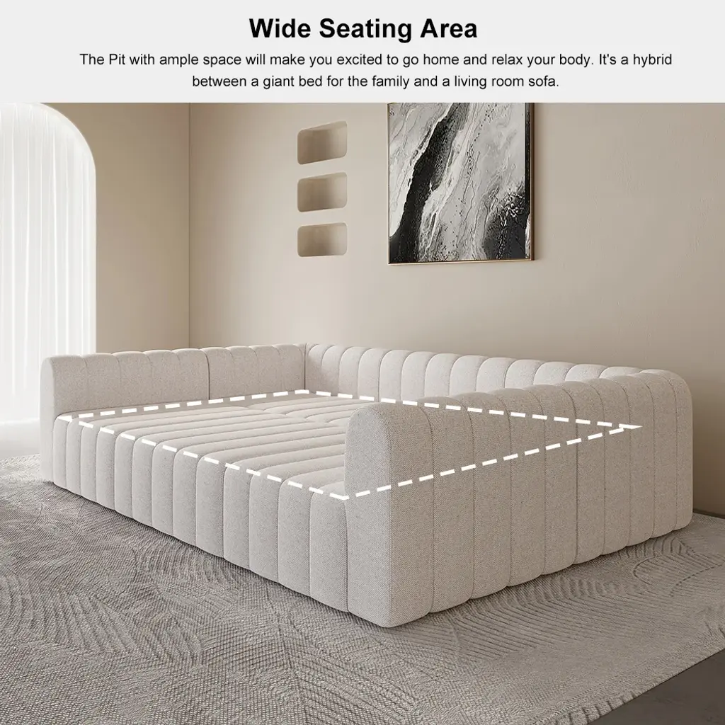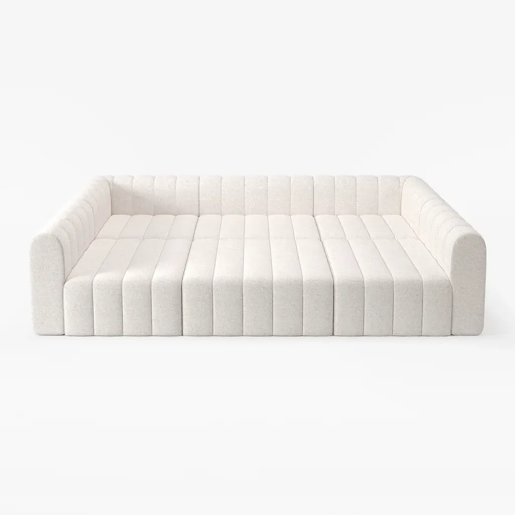 118.9" White Cotton Linen Modular Pit Sectional Sofa Set Convertible 6-Seater
