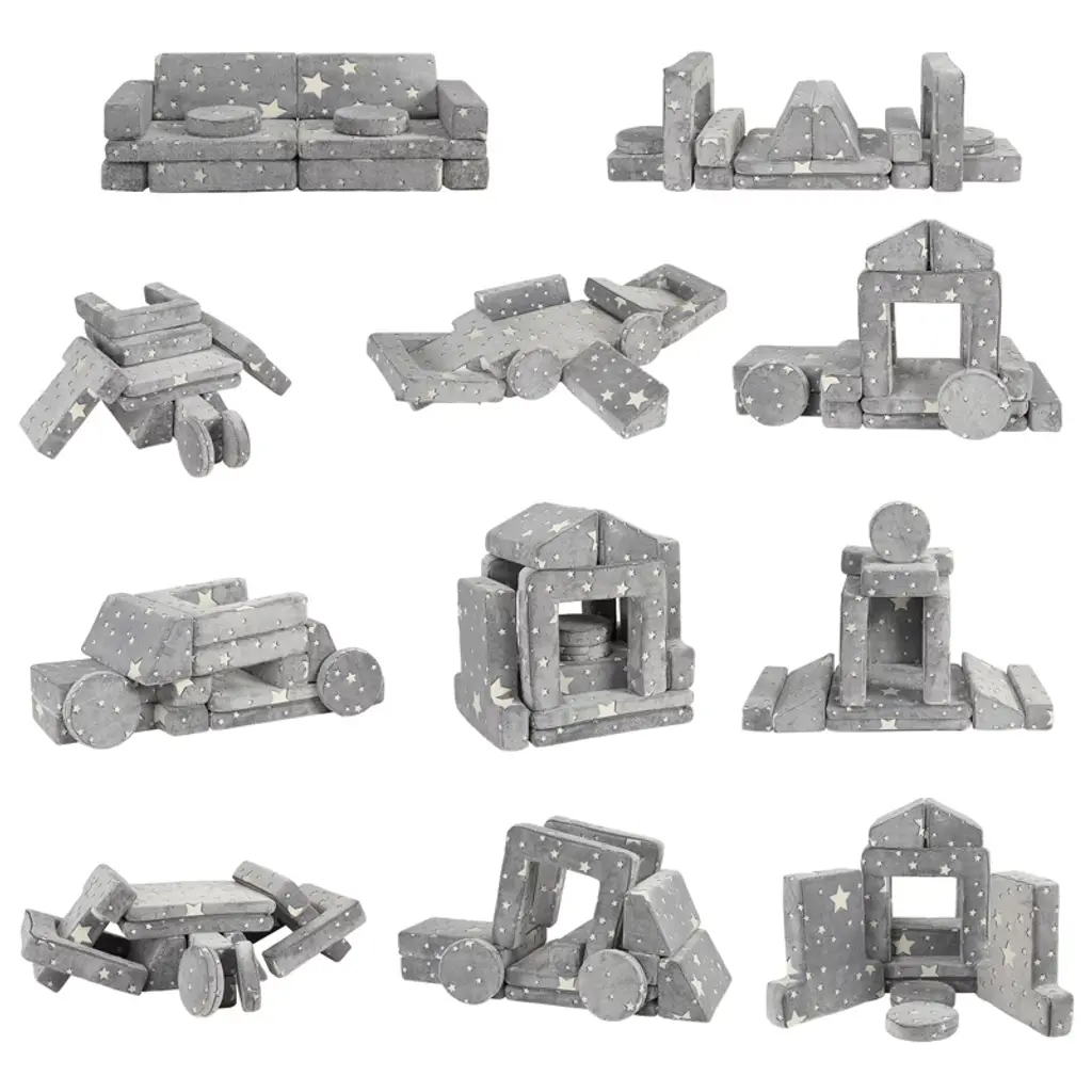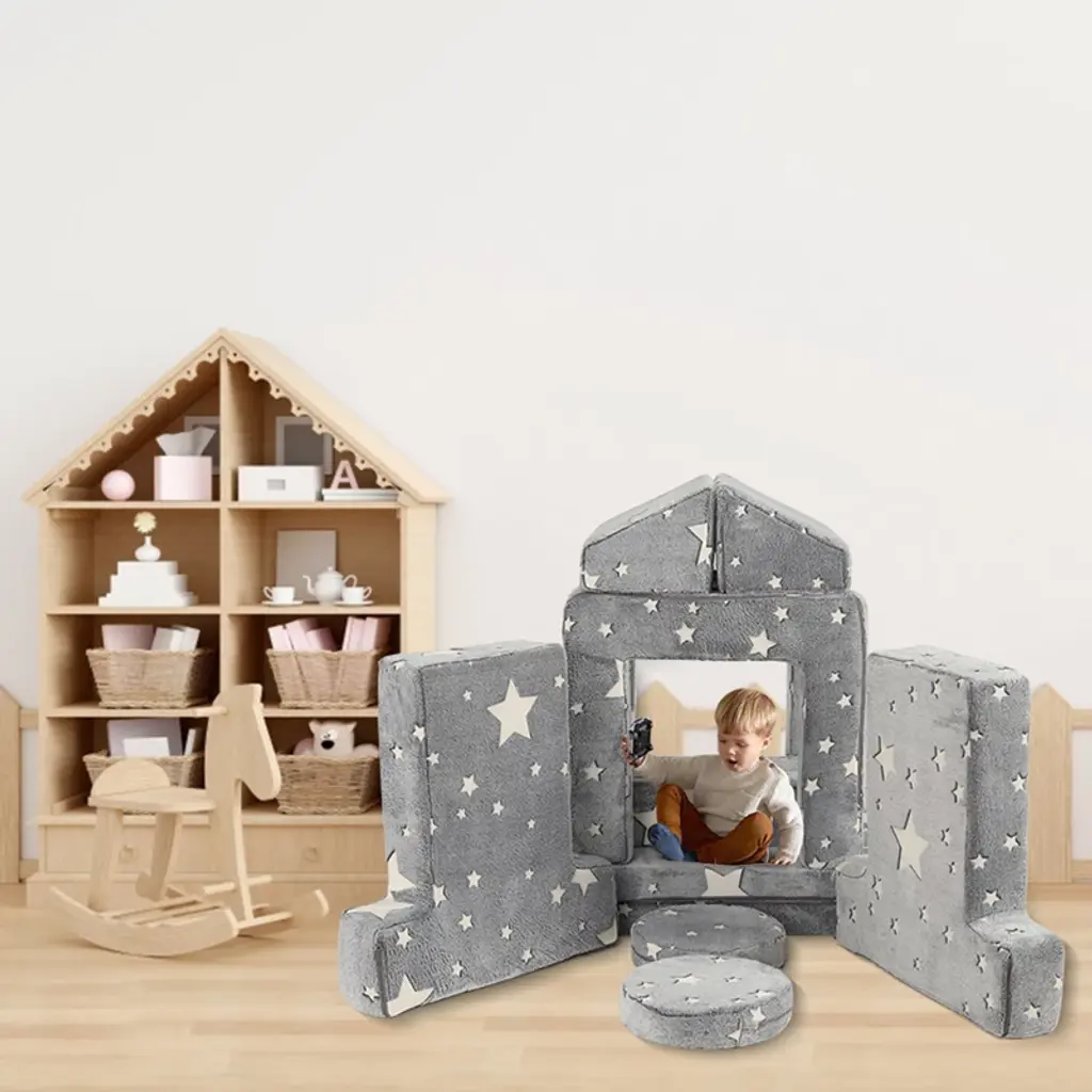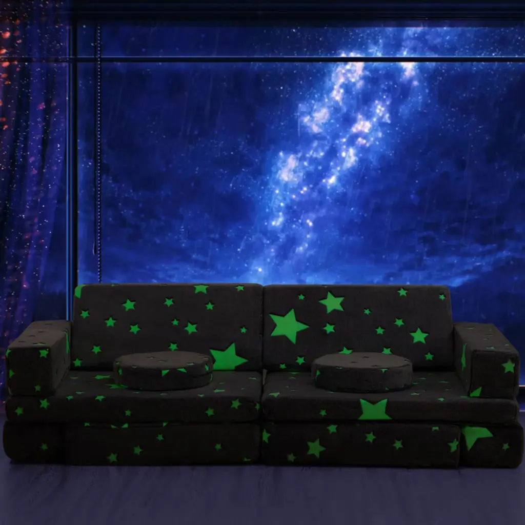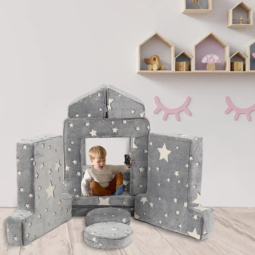 The kids sofa couch creates an independent imaginative and happy space belongs kids own self.Add the sectional chair to any room and create a special spot just for them for reading, sleeping or relaxing. This modular baby couch can bring different entertainment experience and visual feast to your children.Specification:Color: Grey / Glow Dinosaur Size: 3-piece / 12-pieceFill Material: FoamSpecial Feature: Convertible, Compact, RemovableAssembly Instructions: Already AssembledNote:Because of compression packaging, when you receive the couch, the foam will not be fully expanded. It is advisable to be patient and allow it some time to regain its original form.The quality of our products is strictly controlled. If you have any questions about the products, just reach out to us.