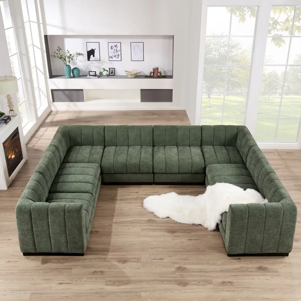 192” U Shape Chenille Green Sectional Couch, 8 Seater Oversized Modular Sofa Set For Living Room Office-morden Fort