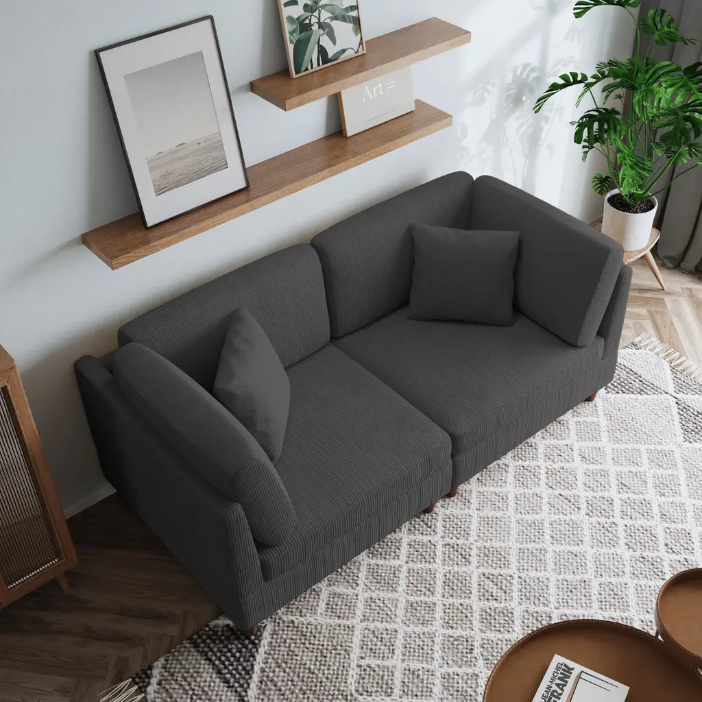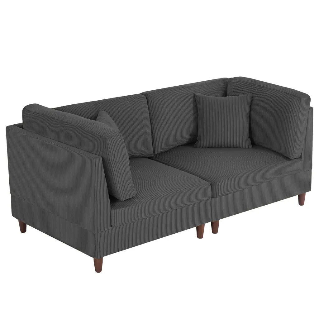 This sectional loveseat is the perfect blend of modern design and ultimate comfort. Upholstered in soft corduroy fabric with a stylish striped texture, it adds a touch of warmth and sophistication to any space. Whether you're curling up for a movie night or hosting a casual conversation, this sectional offers the perfect seating solution with its deep cushions and inviting feel. The modular design perfectly fits the small living room or apartment. Its sturdy construction ensures lasting durability, while the cozy cushions provide just the right amount of support. This couch is the ideal choice for those seeking comfort, style, and versatility in a space-saving design. Specifications:Features: Package Includes:
