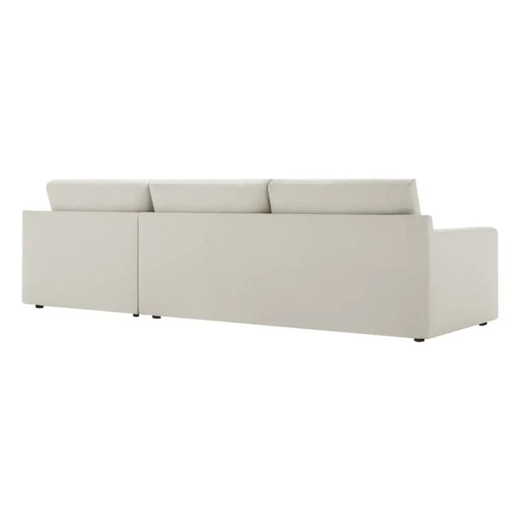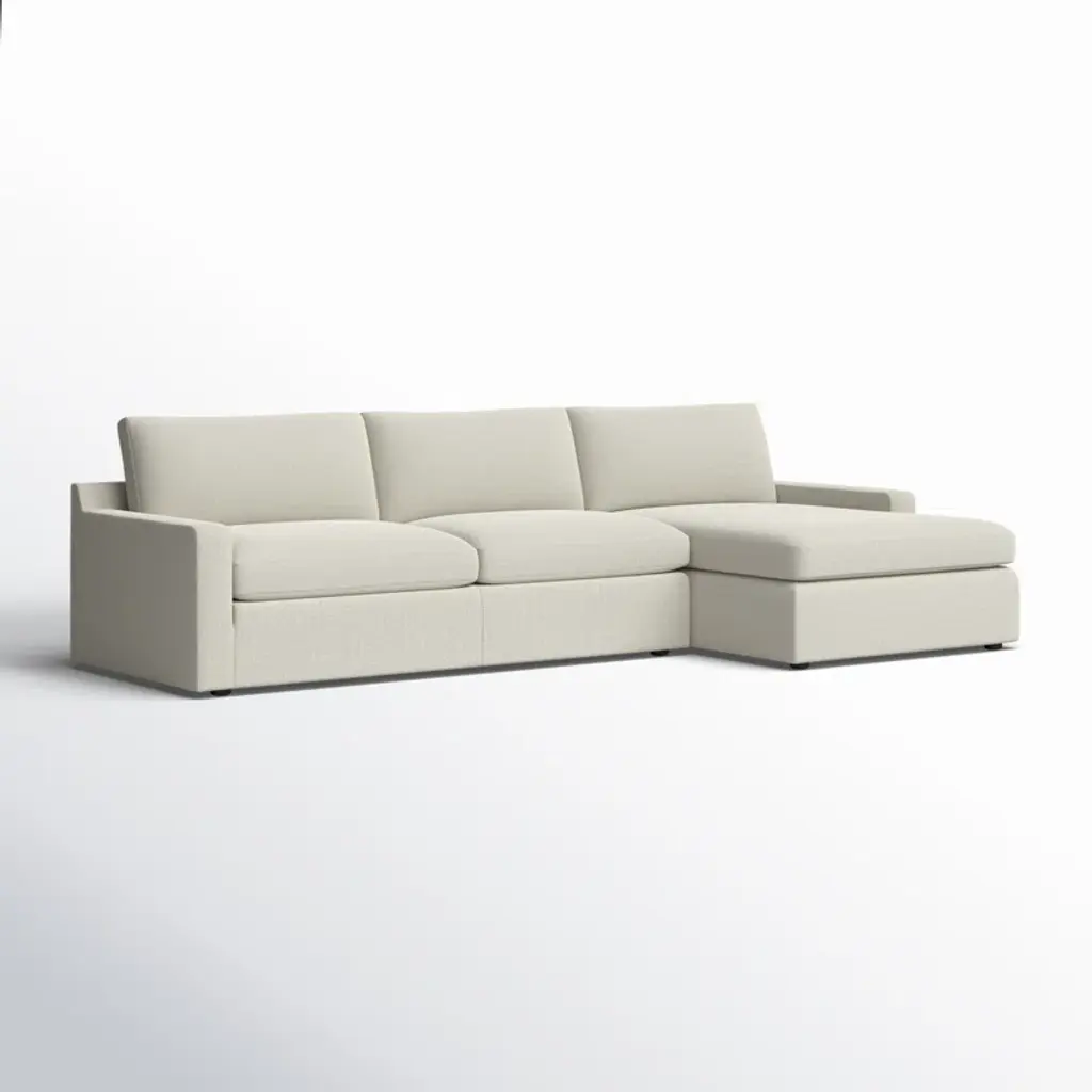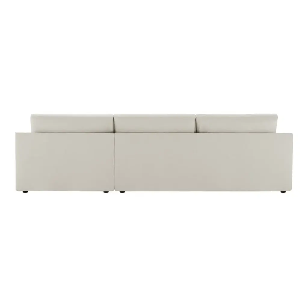 This L-shaped sectional offers a cozy spot for you and your loved ones to unwind and relax. With a right-hand facing orientation, its square arms and loose back design create a contemporary yet inviting atmosphere. Upholstered in water and stain-resistant fabric, it's crafted with a solid wood and engineered wood frame for reliable support. The cushions are filled with a mix of foam, synthetic fiber, and feathers, ensuring a comfortable seating experience for three. Plus, the removable and reversible cushion covers make maintenance a breeze.