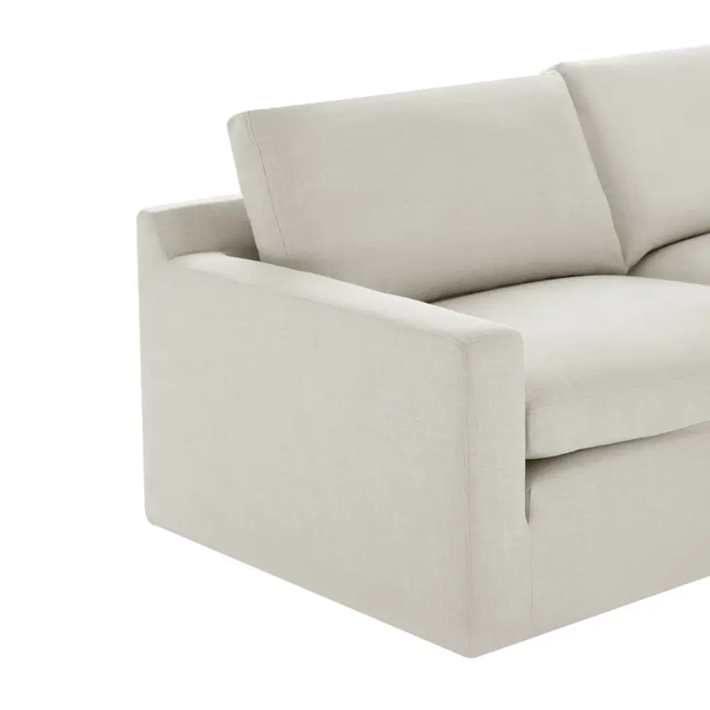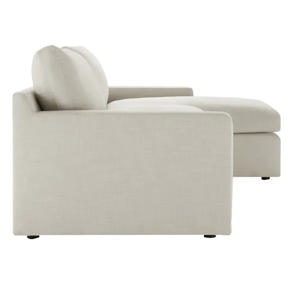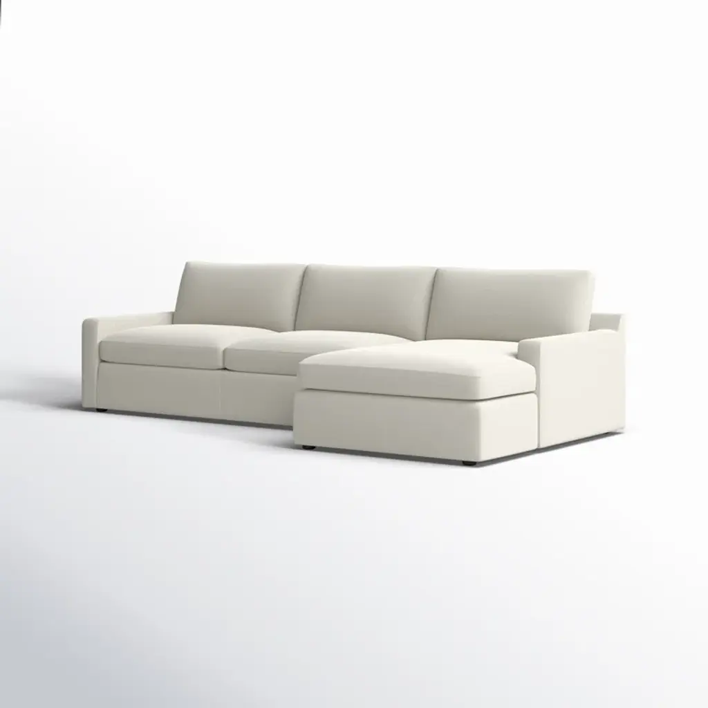 This L-shaped sectional offers a cozy spot for you and your loved ones to unwind and relax. With a right-hand facing orientation, its square arms and loose back design create a contemporary yet inviting atmosphere. Upholstered in water and stain-resistant fabric, it's crafted with a solid wood and engineered wood frame for reliable support. The cushions are filled with a mix of foam, synthetic fiber, and feathers, ensuring a comfortable seating experience for three. Plus, the removable and reversible cushion covers make maintenance a breeze.