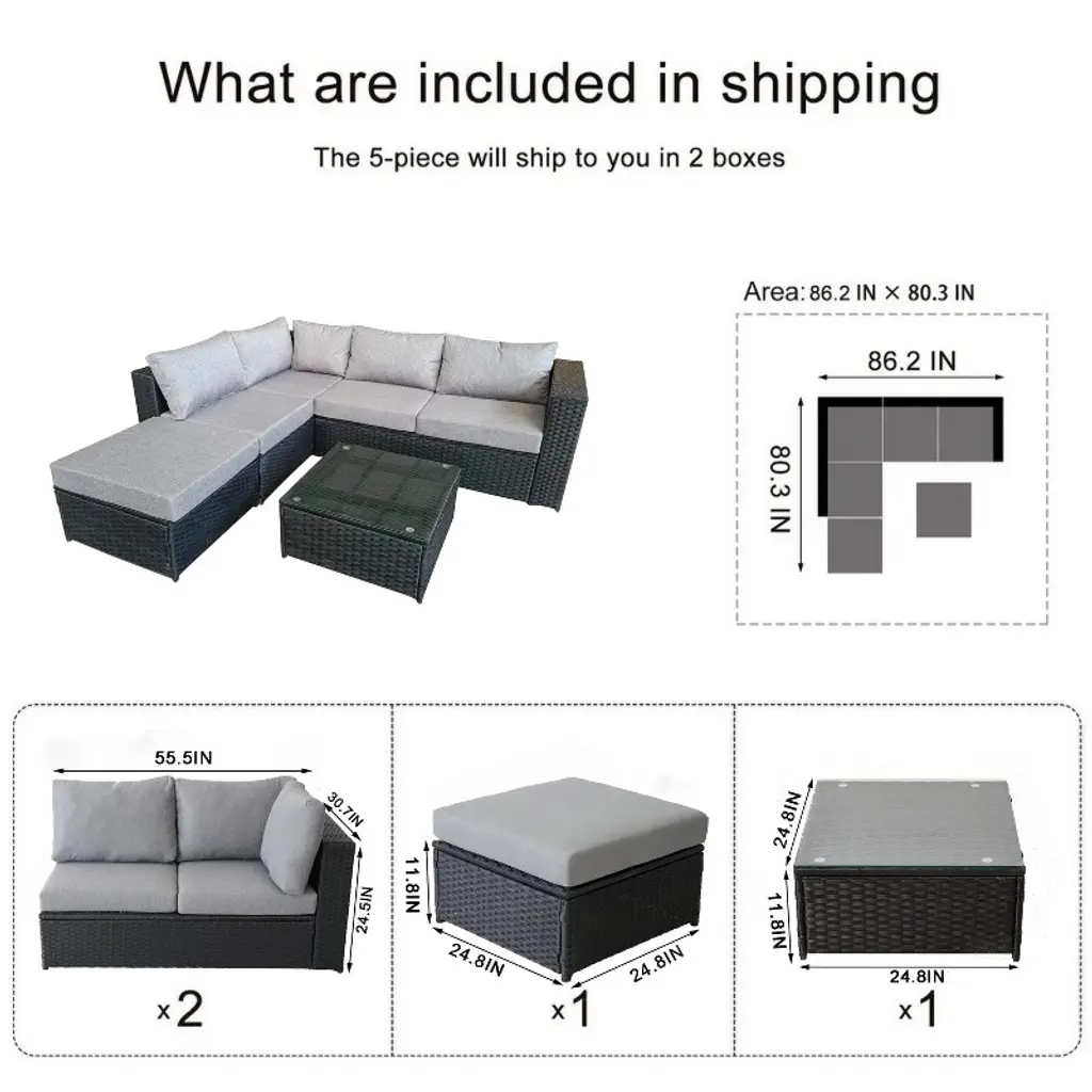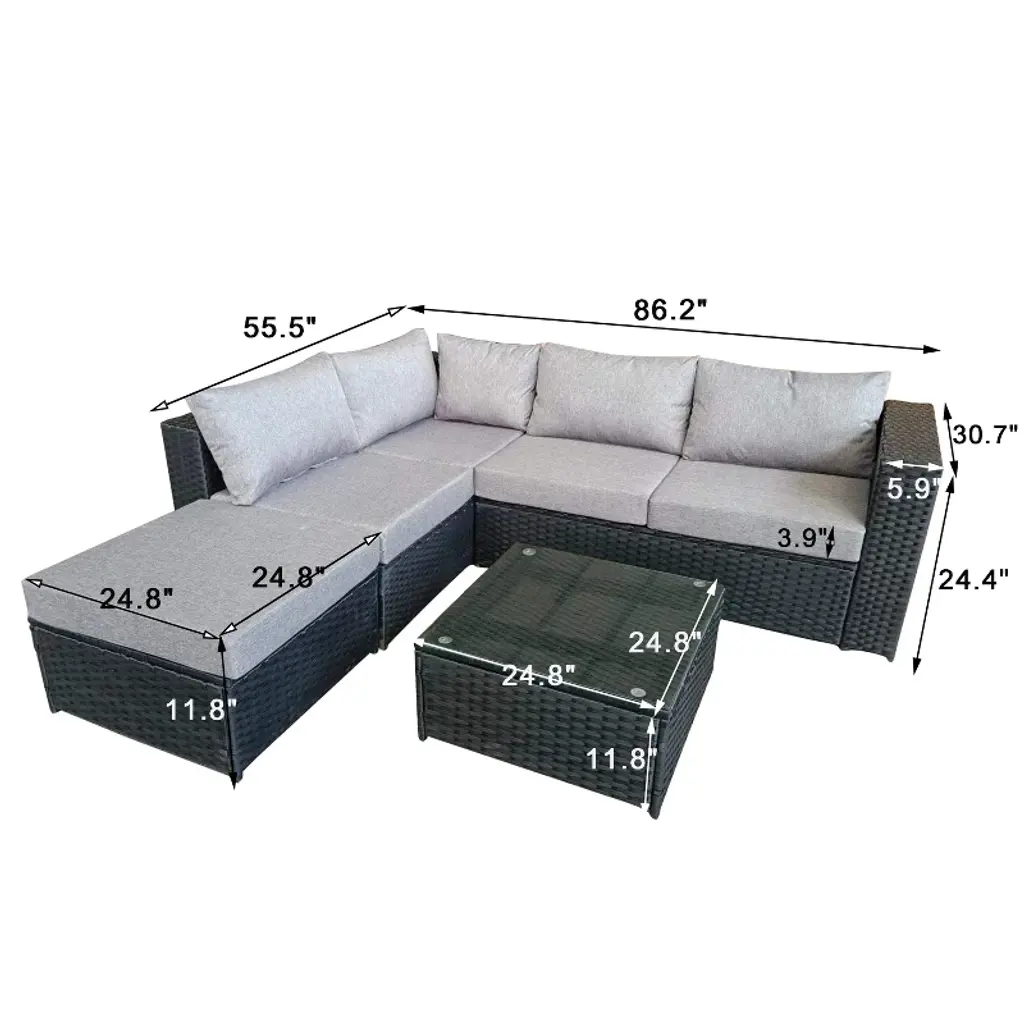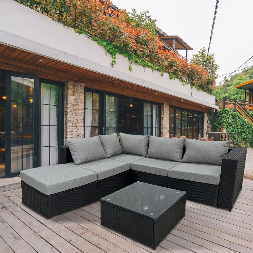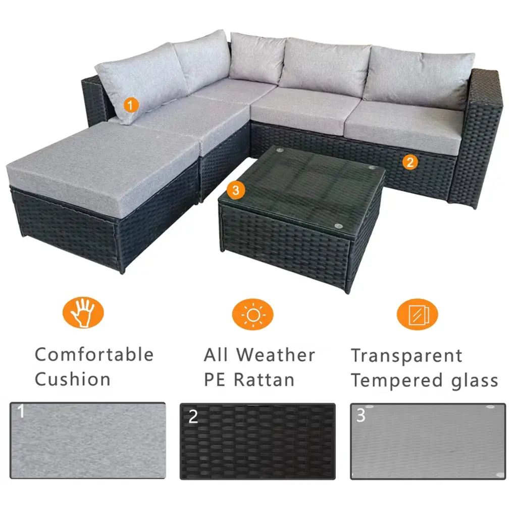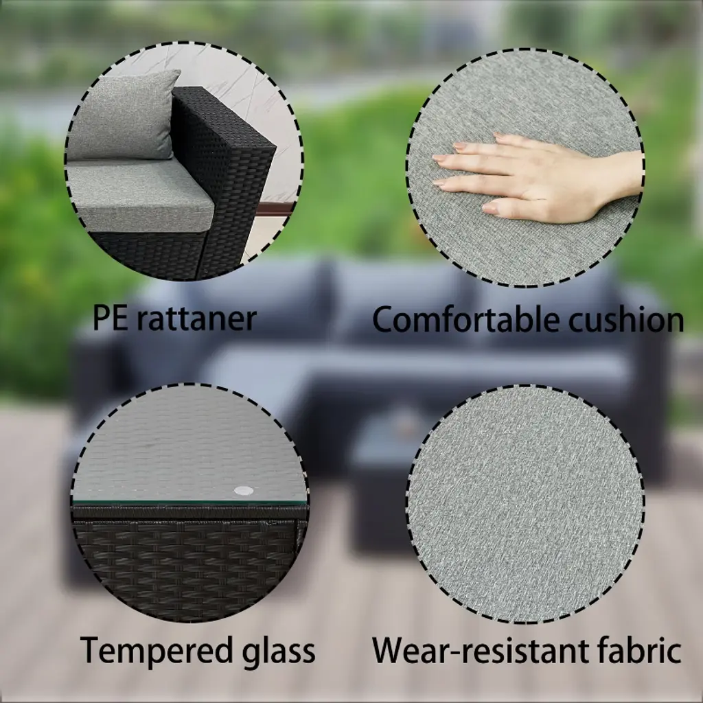 4 Pieces Wide Outdoor Rattan Sectional Sofa With Cushions - Small Patio Wicker Furniture,pe Rattan Sectional Sofa Set With,tempered Glass Desktop