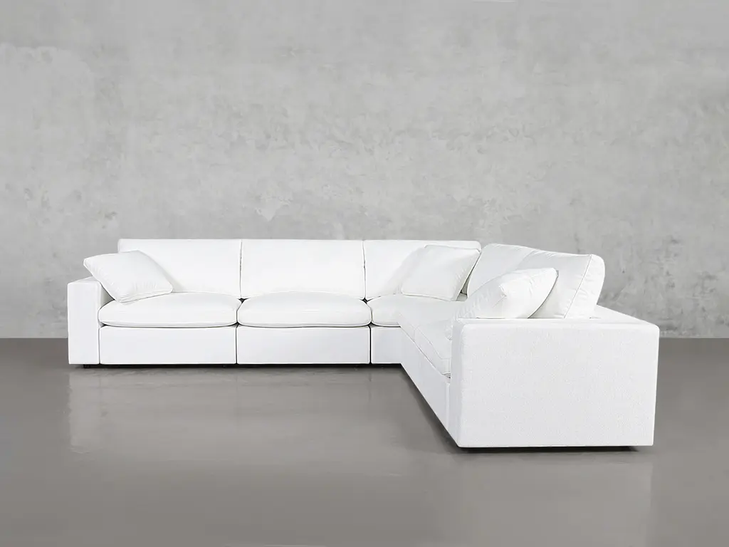 Introducing the 5-Seat Modular Corner Sectional Sofa, a contemporary piece of furniture that adds modern elegance to any living space. This luxurious sofa is composed of five cushioned modules that can be arranged in multiple ways to fit your unique needs, whether you're entertaining guests or just want something extra special to curl up with while watching TV. Crafted with the highest quality materials and construction, the 5-Seat Modular Corner Sectional Sofa promises comfort and style all rolled into one. Its timeless design features smooth lines and angles that bring sophistication to any room, making it perfect for anyone looking for luxury, modern furniture. Make your living space look beautiful with our 5-Seat Modular Corner Sectional Sofa.