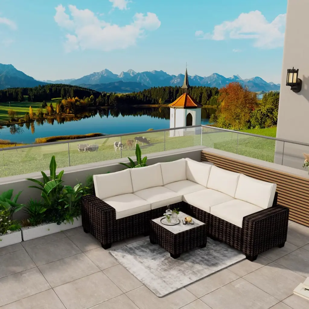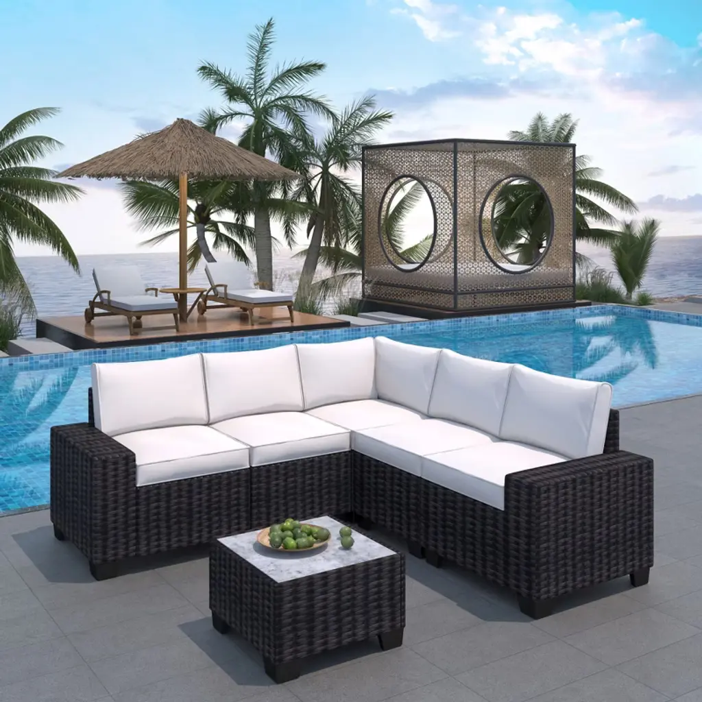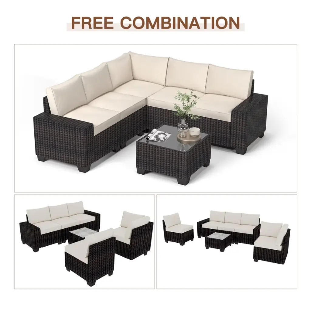 6-piece Pe Rattan Patio Sectional Set – Modular Outdoor Sofa, Coffee Table & Thick Cushions, Weatherproof For Poolside, Backyard