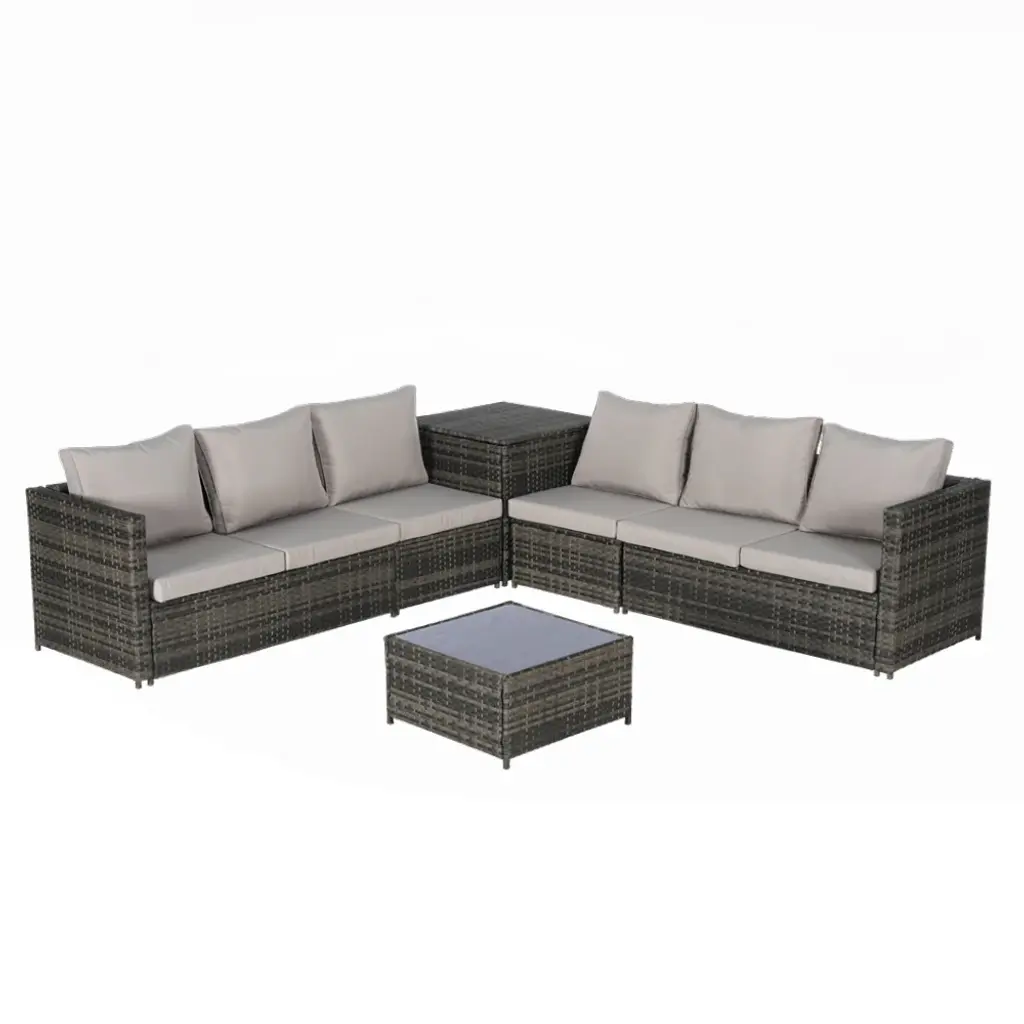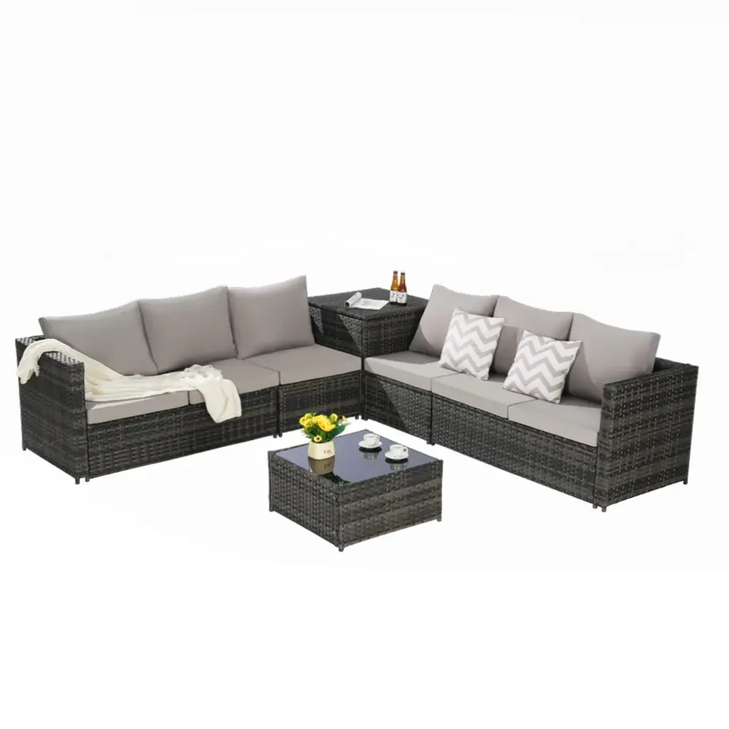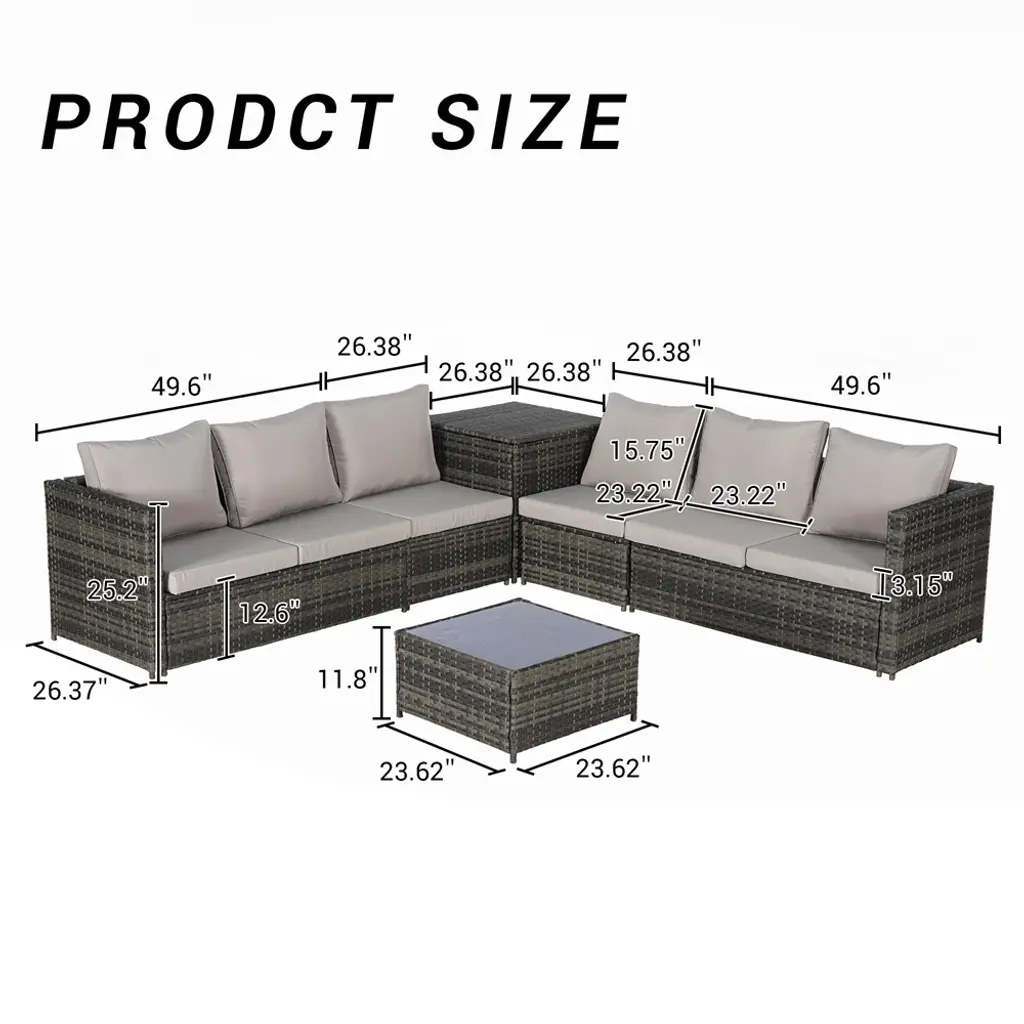 6 Pieces Outdoor Woven Sectional L- Shaped Patio Furniture - Light Gray