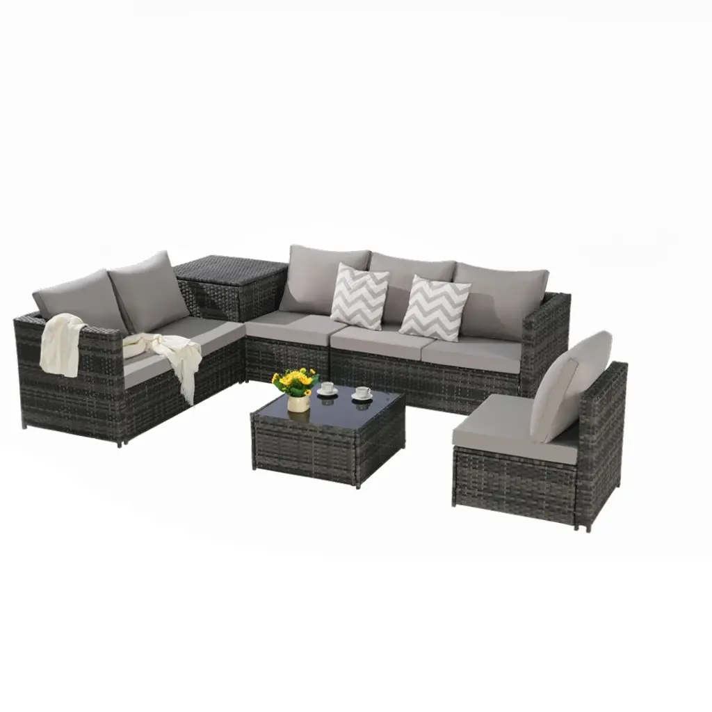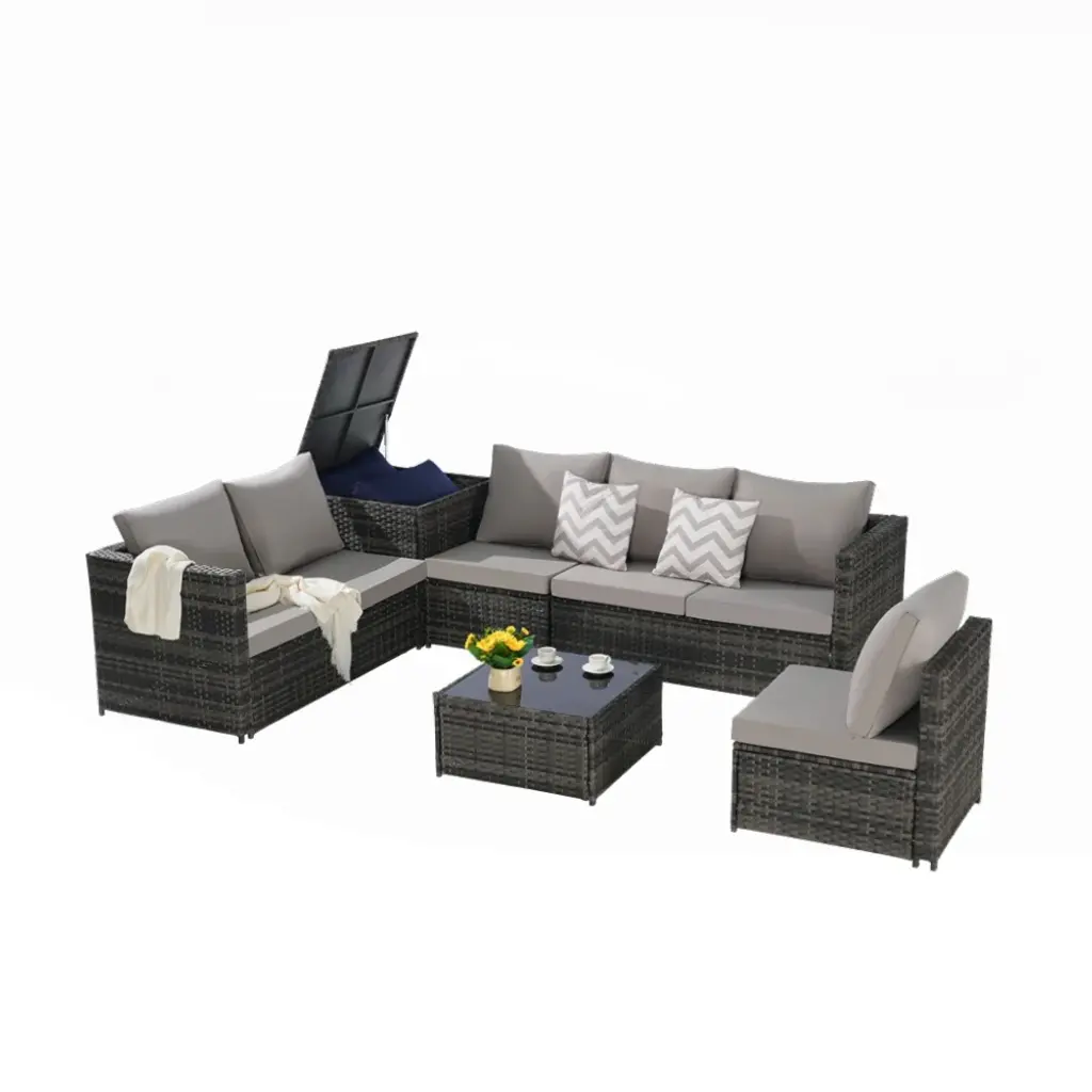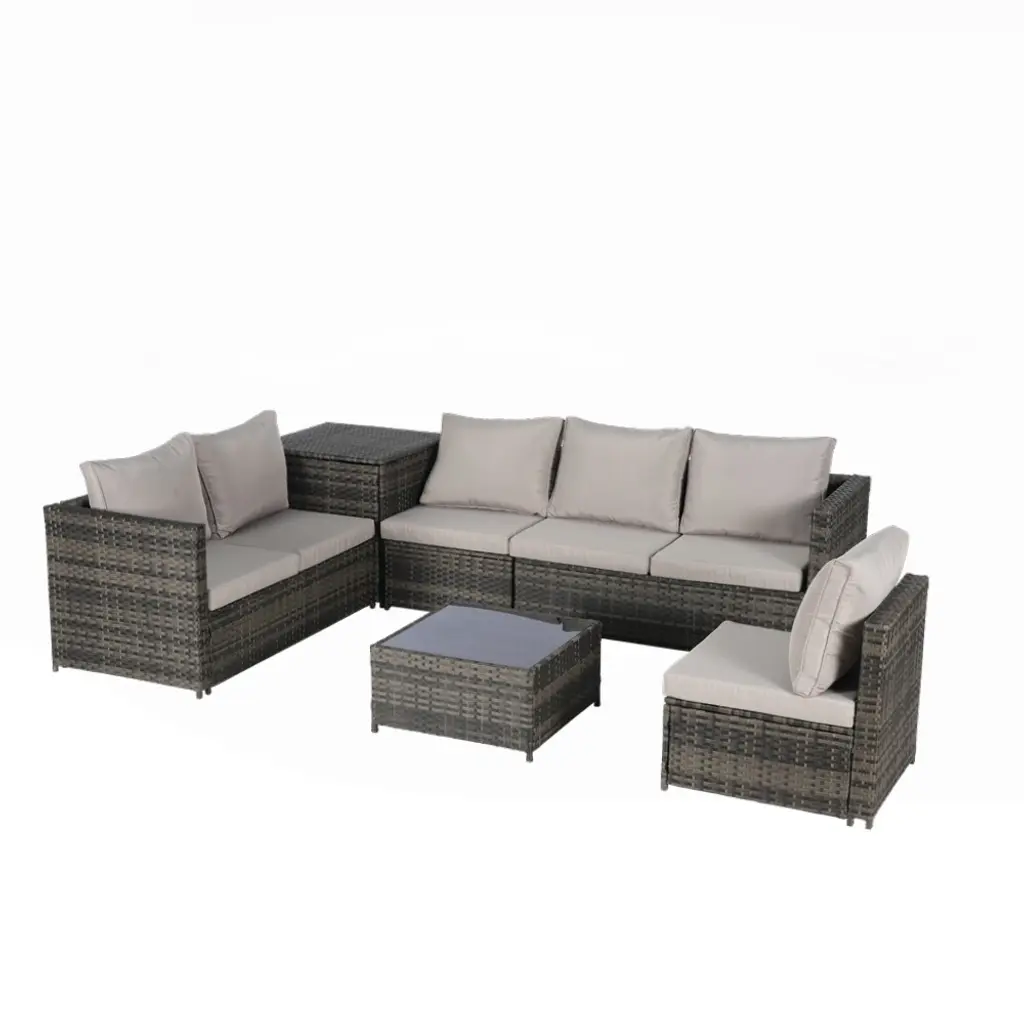 6 Pieces Outdoor Woven Sectional L- Shaped Patio Furniture - Light Gray