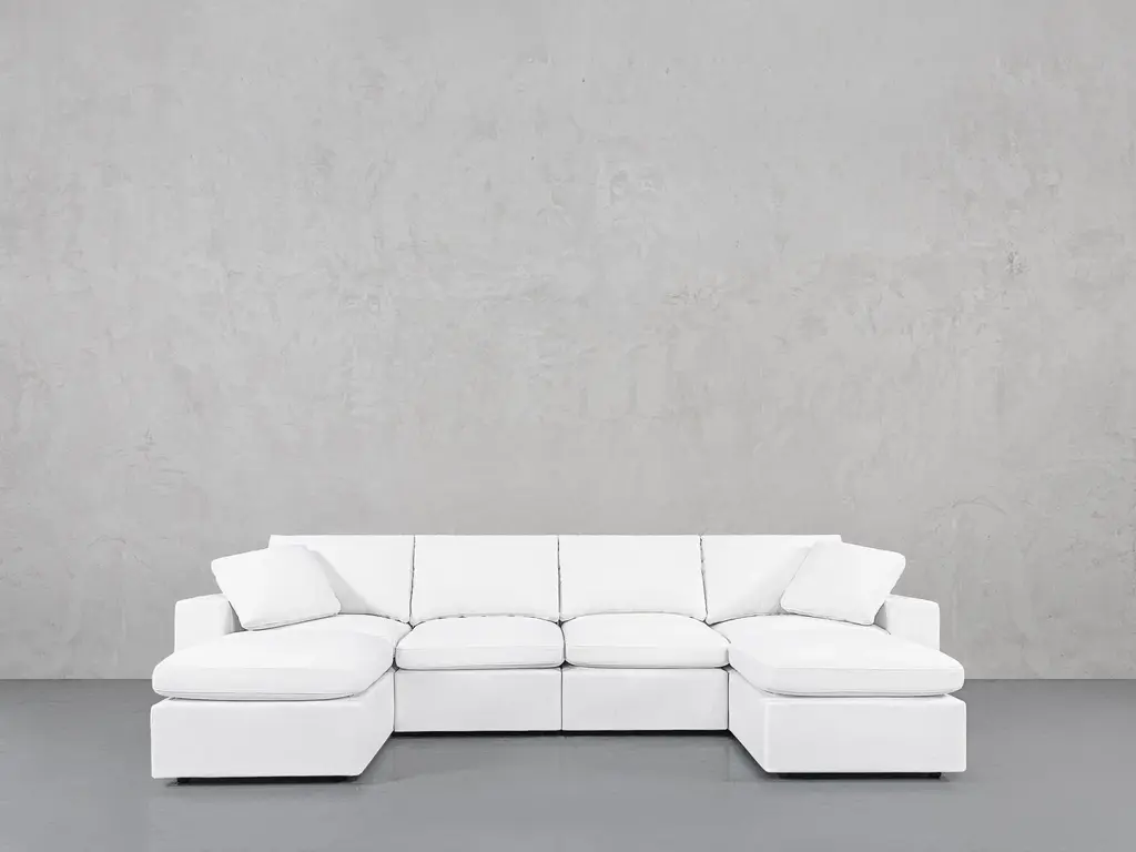 Introducing the 6-Seat Modular Double Chaise Sectional Sofa - a beautiful and luxurious piece of furniture that is sure to make a stylish statement in your home. This elegant and modern design provides comfort and convenience for your living space, making it the perfect addition to any home. The thick cushions and neutral colors ensure that it will blend seamlessly into any décor while providing a comfortable place to relax or entertain guests. The modular design allows you to configure the chaise sectional in whatever arrangement fits your living space best. Get ready to enhance your living space with this luxurious, flexible, and stylish piece of furniture.