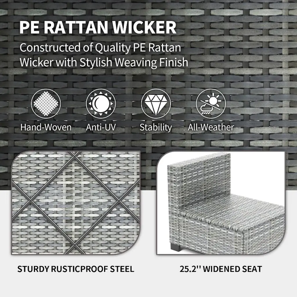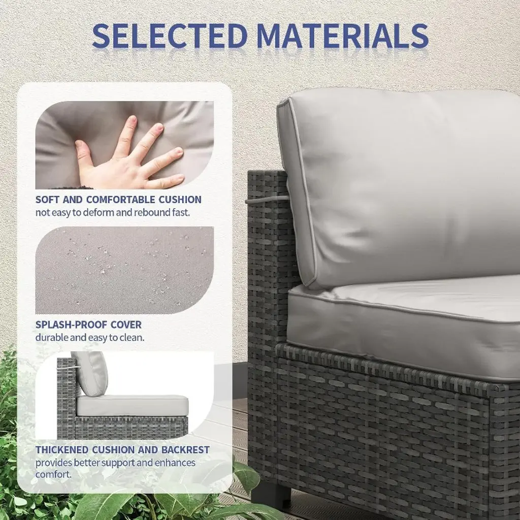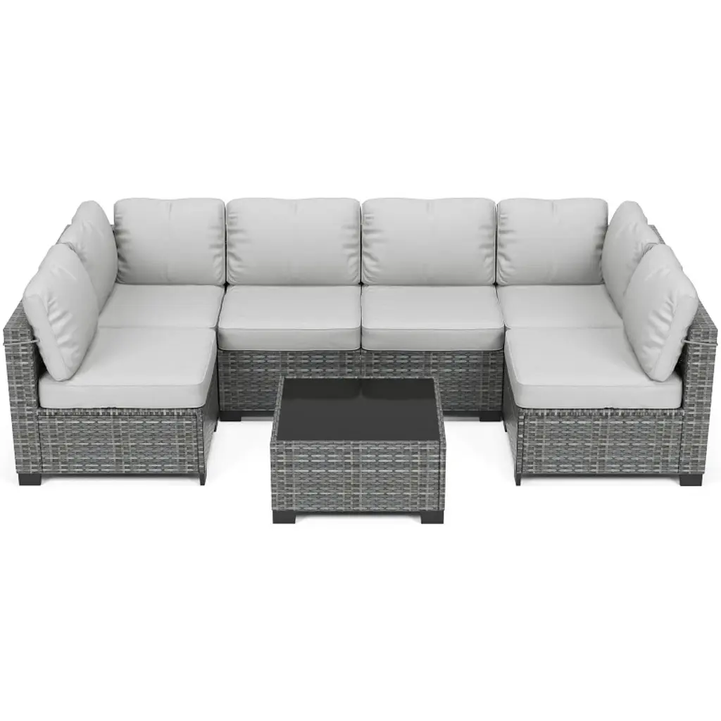 7 Pcs Outdoor Patio Furniture Set, Wicker Sectional Sofa Set Rattan Modular Conversation Couch Set With Cushions For Outside, Garden, Balcony, Porch