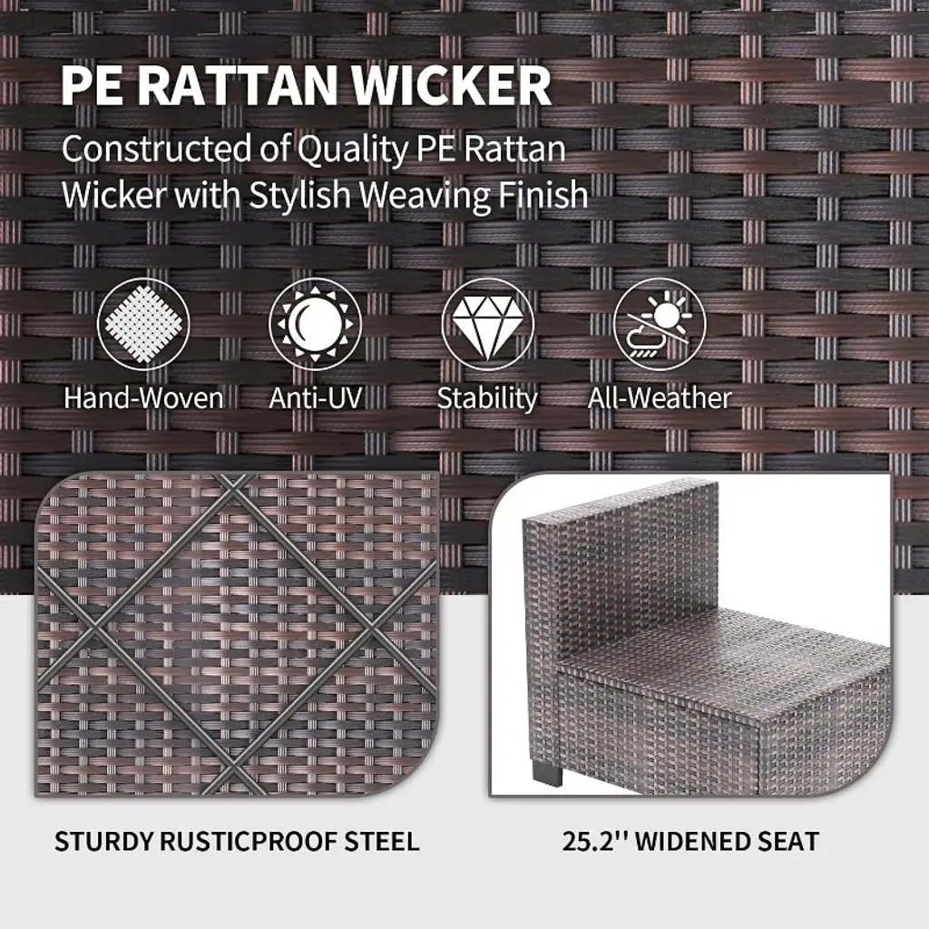 7-Piece PE Rattan Wicker Outdoor Patio Furniture Set - Modular Sectional Sofa with Thick Cushions and Glass Top Coffee Table - Perfect for Garden, Balcony, and Porch Relaxation.7 Piece PE Rattan Patio Conversation Set, All Weather Wicker Outdoor Furniture Set with Modular Sectional Sofa and Tempered Glass Table.7 Piece PE Rattan Patio Conversation Set, All Weather Wicker Outdoor Furniture Set with Modular Sectional Sofa and Tempered Glass Table