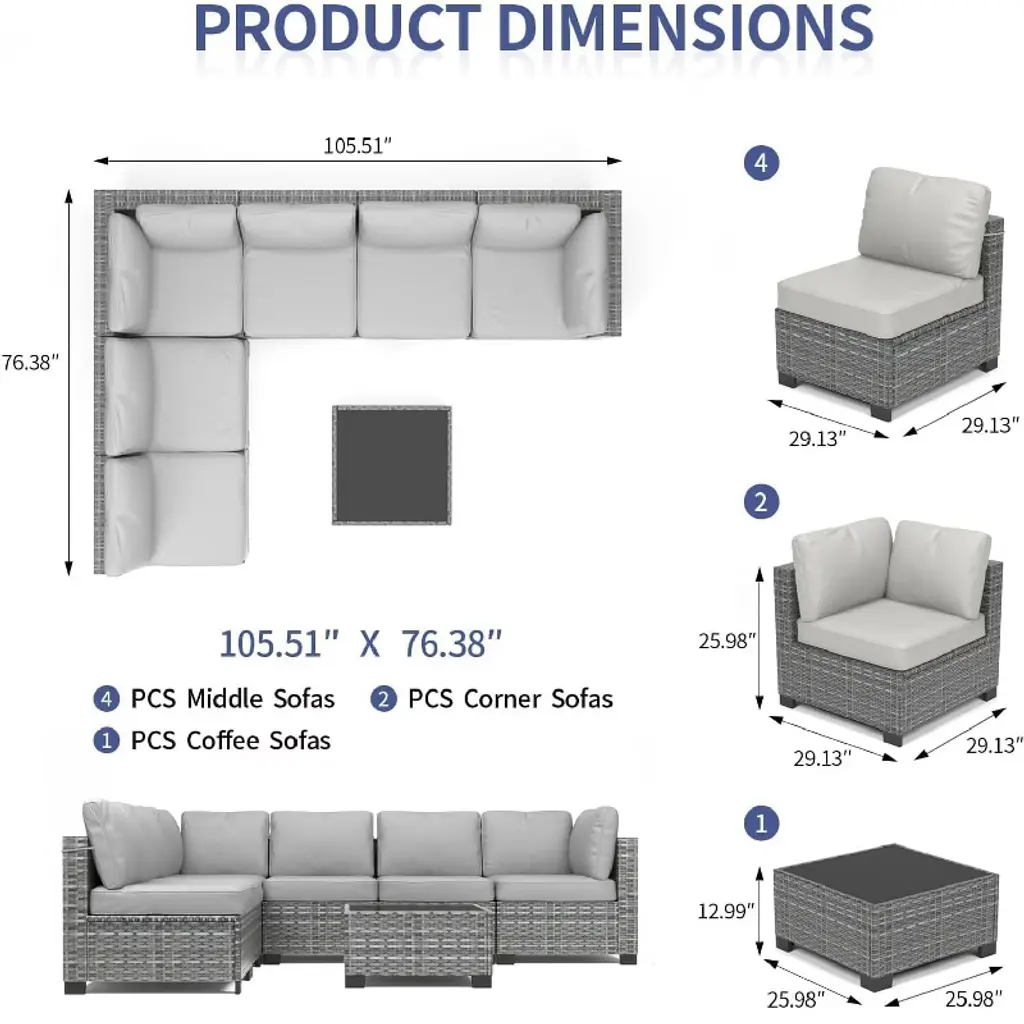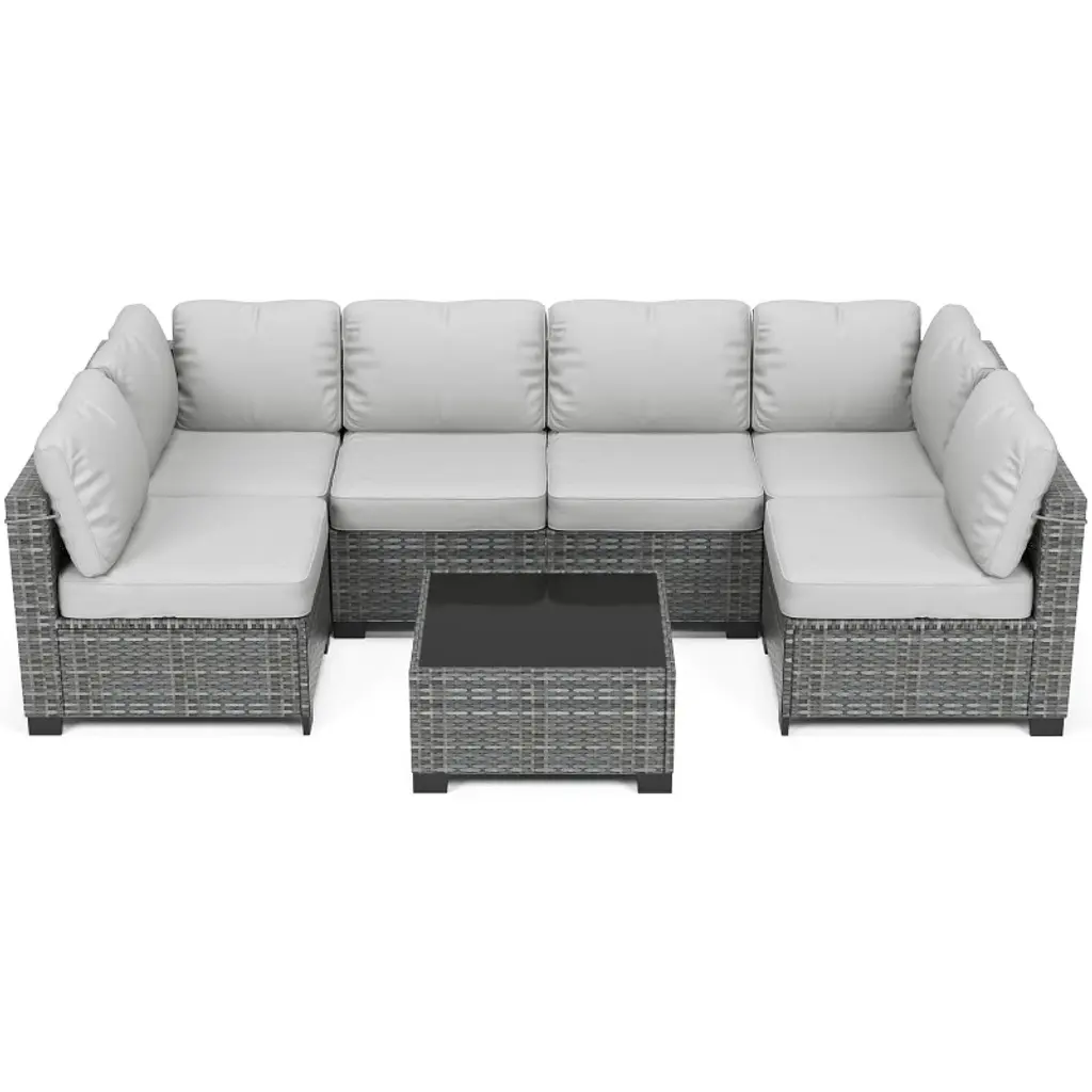 7-piece Wicker Patio Sofa Set, Outdoor Sectional Couches With Coffee Table And Cushions For Garden And Porch, Gray
