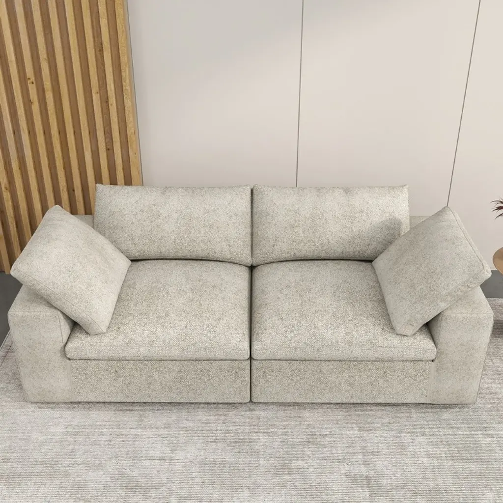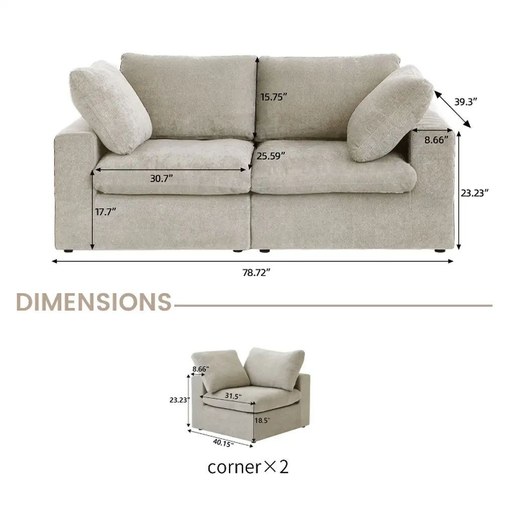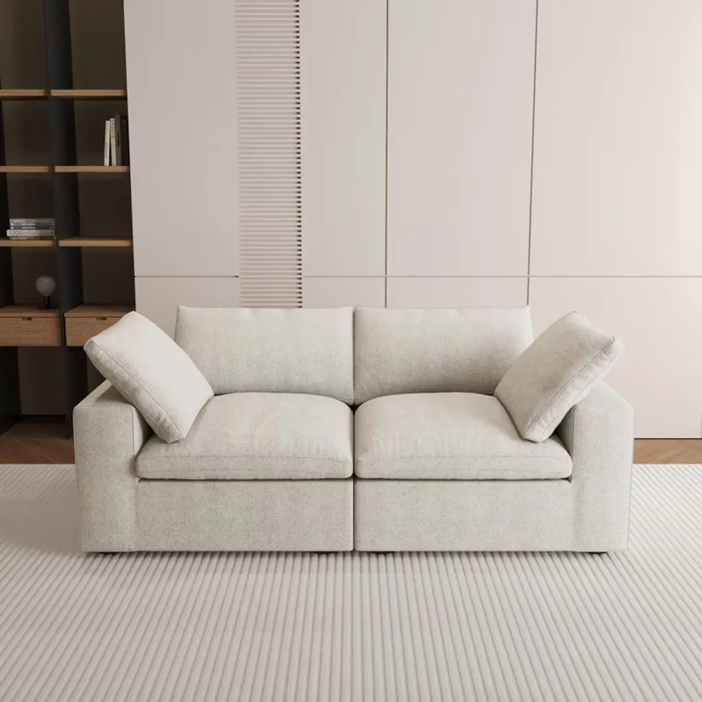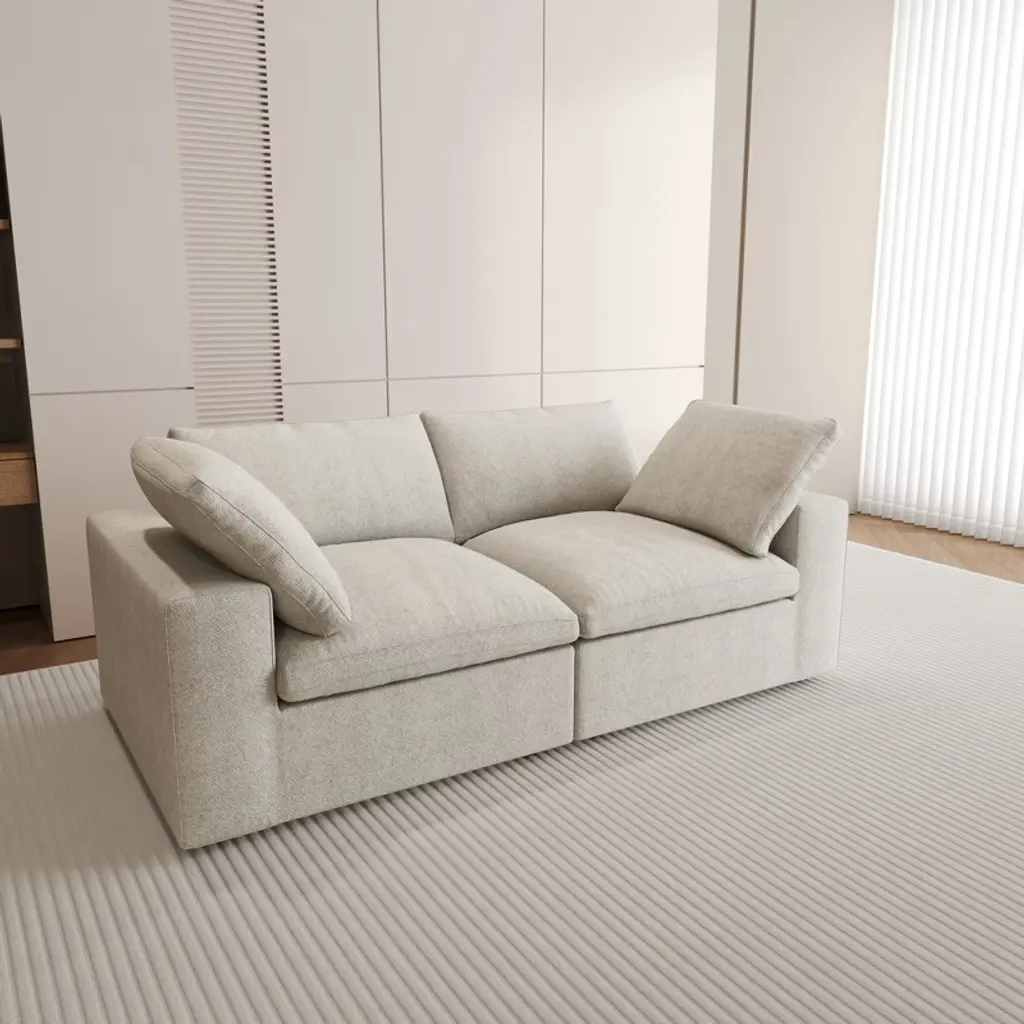 The Skycloud sofa is designed to provide "cloud-like comfort." Its filling combines sponge, cotton, and down in the perfect ratio, making it soft yet resilient, which ensures comfort without sagging. The Skycloud sofa also has a modular design: you can freely combine the seats, arrange or remove the arm cushions, and choose from three modules: corner, armless, and ottoman. These features offer endless possibilities for arrangement. The Skycloud sofa is designed to provide "cloud-like comfort." Its filling combines sponge, cotton, and down in the perfect ratio. Thanks to this filling, the Skycloud sofa is soft yet resilient. In addition, the Skycloud sofa is highly modular: you can freely combine the seats, and arrange or remove the arm cushions. Besides, you can choose from three modules: corner, armless, and ottoman. These features offer endless possibilities for arrangement. BY other word: Elevate your living space with this expansive this cloud sofa, designed for ultimate comfort and versatility. The sofa features a sturdy solid wood frame, ensuring durability and long-lasting support. Upholstered in premium hemp-blend fabric, it offers a dense yet soft texture, combining wear resistance, moisture resistance, and a static-free experience. The feather-filled cushions provide a plush, cloud-like seating experience, while the modular design allows you to customize the layout to suit your space. The included convertible ottoman adds extra functionality, perfect for lounging or additional seating. For added convenience, the removable and washable covers make maintenance a breeze. With its generous seating width and depth, this sofa offers ample space to stretch out and relax, making it the perfect centerpiece for your home. Upgrade your comfort with this stylish and practical sectional sofa today!