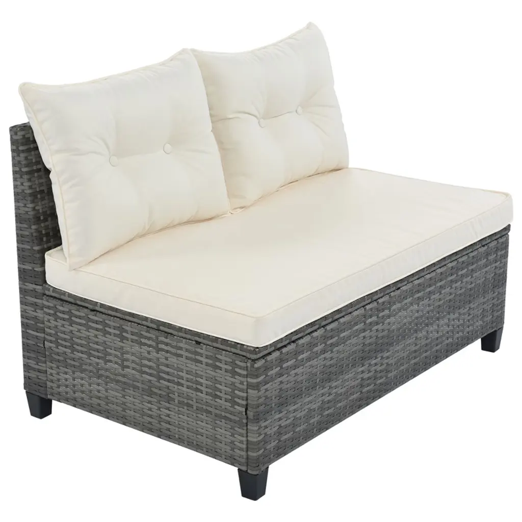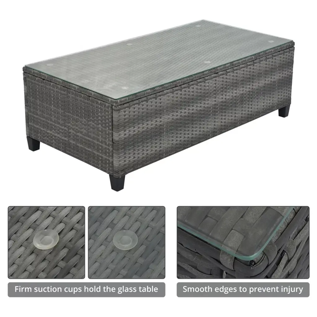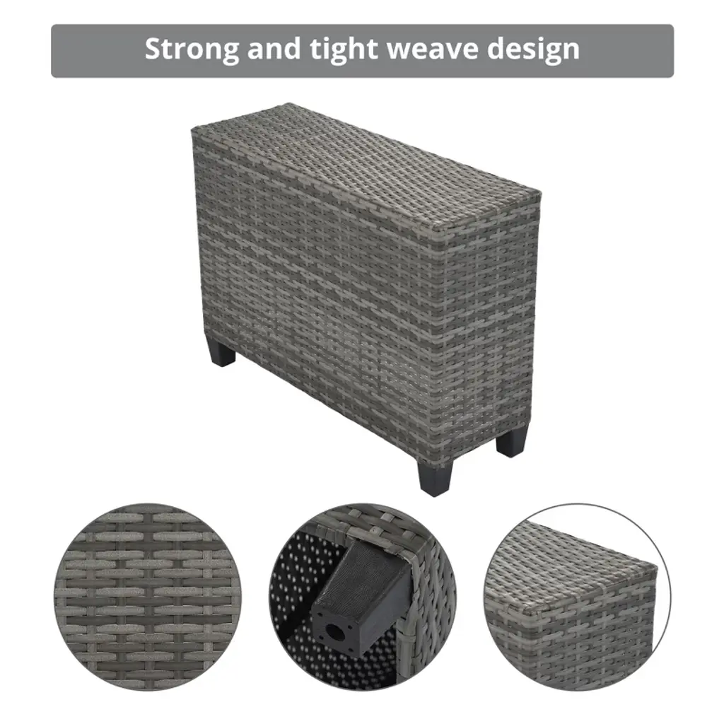 8-Piece Outdoor Sofa Set ¨C Stylish and Comfortable for Your Outdoor Oasis Transform your patio or garden into a cozy and inviting space with this 8-Piece Outdoor Sofa Set. Designed with a modern half-moon shape, this unique set combines style and comfort to create a perfect lounge for relaxation or gatherings. Whether you're hosting a party or simply unwinding, this set offers versatile seating arrangements to suit your needs. Product Features Curved Design: The 8-piece sofa set features a modern half-moon shape, creating a distinctive semicircular lounge. This unique design adds a touch of elegance to your outdoor space while providing ample seating for everyone.Excellent Quality: Crafted with weather-resistant PE rattan wicker and a sturdy steel frame, this set ensures durability in outdoor conditions. The cushions are filled with thick foam and covered with waterproof, UV-resistant polyester fabric, providing long-lasting comfort.Flexible Combination: The modular design allows you to customize the layout of the pieces to suit your space and preferences. Rearrange the set to fit different seating configurations based on your outdoor area, ensuring maximum flexibility.Comfortable & Multifunctional: The set includes thick back-support cushions for optimal comfort. It also comes with side and coffee tables featuring tempered glass tops, ideal for placing drinks, snacks, or decor. The glass is securely attached with suction cups for added safety.Detailed Tutorial: The set comes with a clear installation guide that can be easily completed by 1-2 adults in about an hour. All tools for assembly are included, and the set is securely packed in four flat packages, which may arrive separately. Product Description This 8-Piece Outdoor Sofa Set is designed for comfort and versatility. Constructed from high-quality, weather-resistant PE rattan wicker and a durable steel frame, this set is built to withstand the elements while providing stylish seating for your outdoor space. With thick, foam-filled cushions and modular components, you can easily rearrange the pieces to suit your patio, garden, or balcony. The included side and coffee tables offer additional convenience, with securely attached tempered glass for safety and stability. Component 4 Scalloped Sofas1 Double Seat1 Coffee Table2 Side Tables Weight Capacity: Wicker Sofa: 250 lbs per seatCoffee Table: 125 lbs Assembly Adult Assembly Required: YesAdditional Tools Required: All tools included Enhance your outdoor living with this elegant and comfortable 8-piece sofa set ¨C the perfect addition to any patio, garden, or poolside retreat.