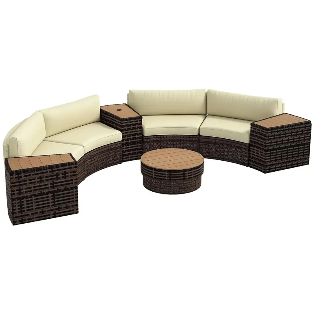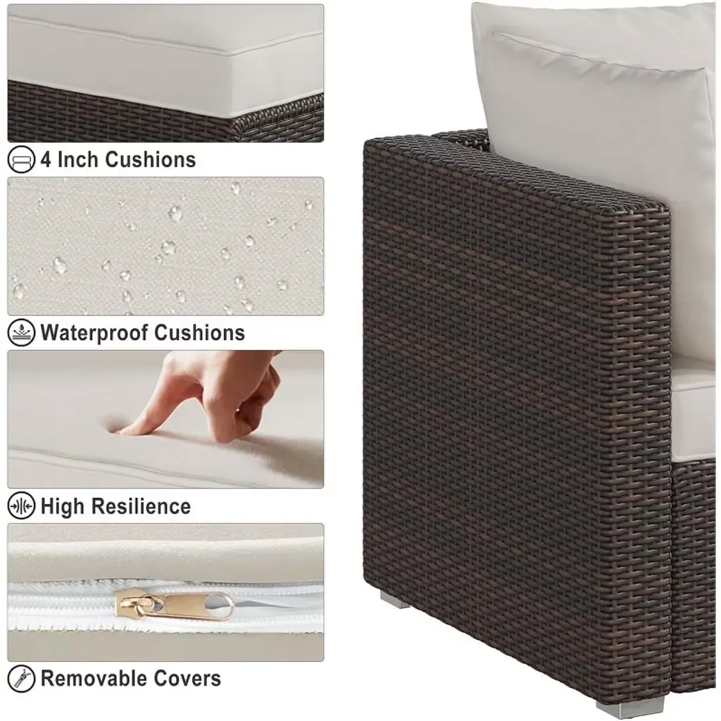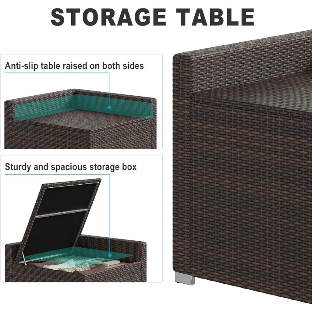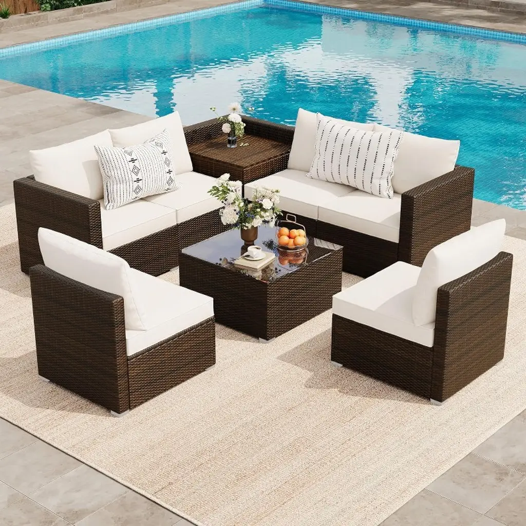 8-piece Outdoor Waterproof Patio Conversation Sets, Modular Pe Rattan Sectional Sofa With Cushions & Hidden Storage, For Lawn, Porch, Pool, Backyard