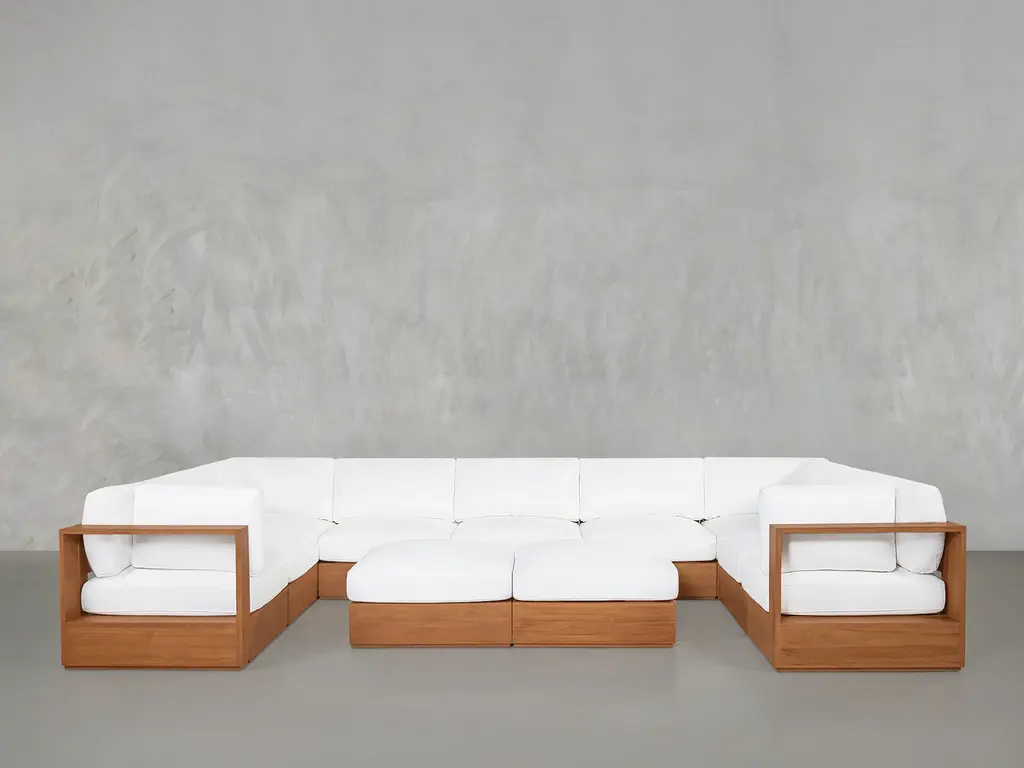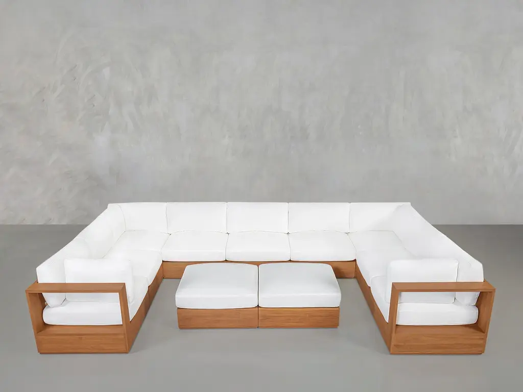9-Seat Modular U-Sectional With Double Ottoman Teak Outdoor