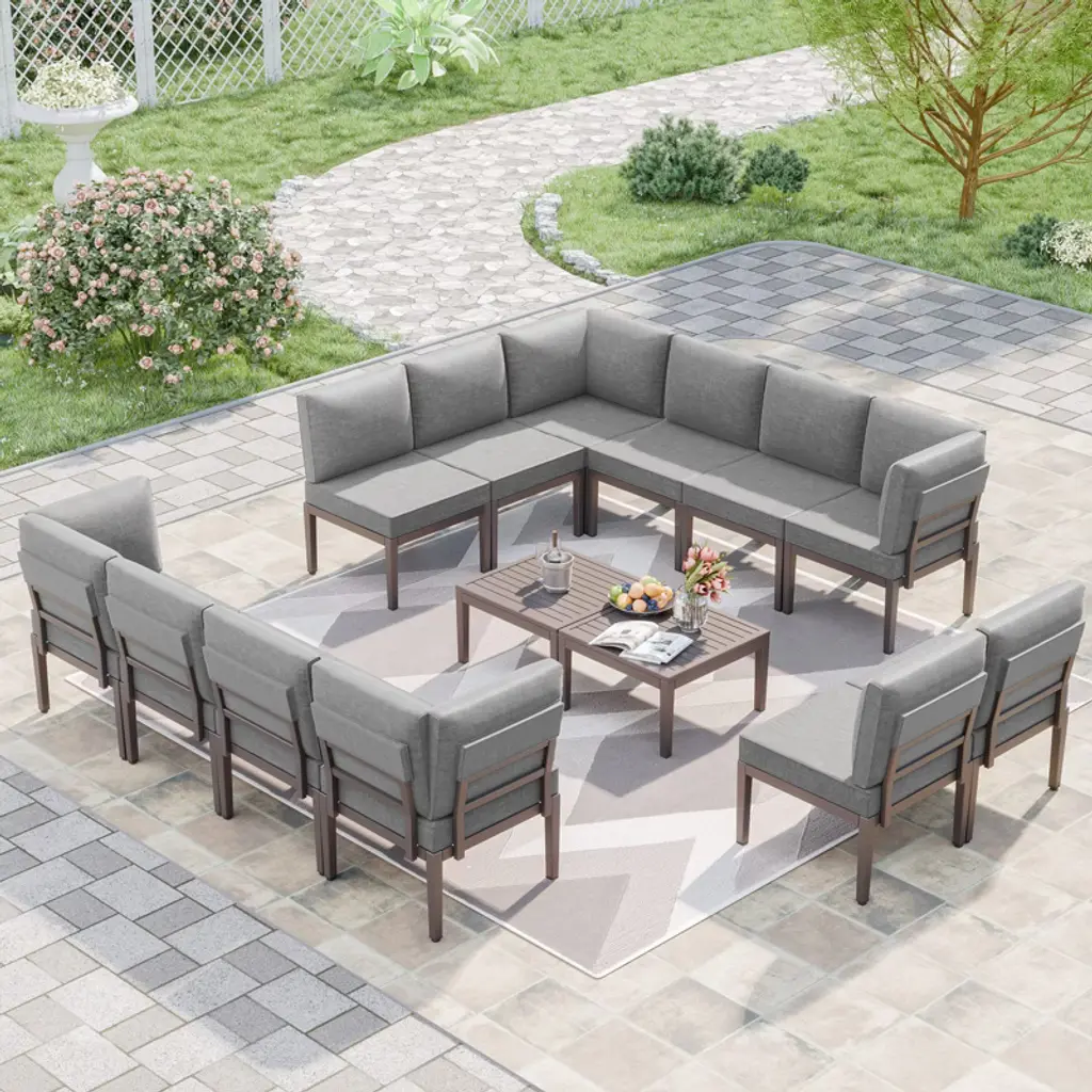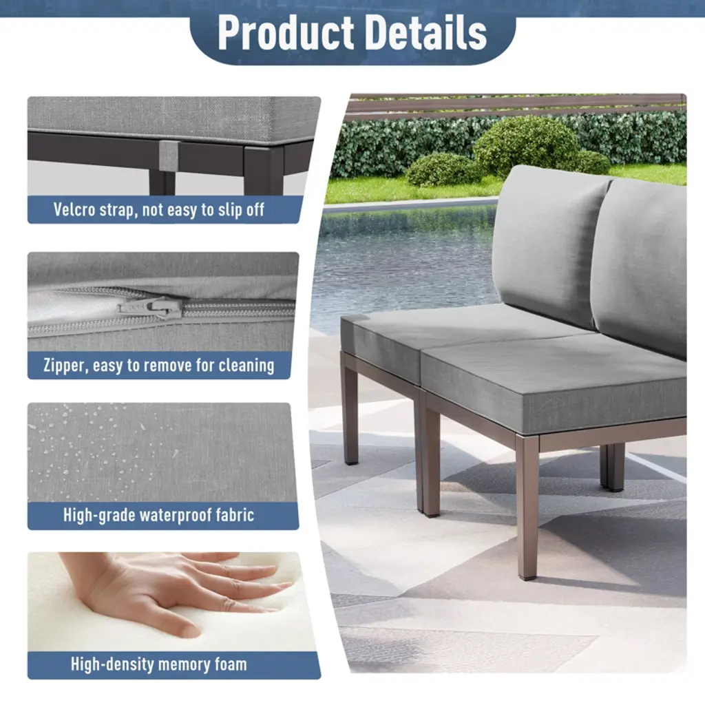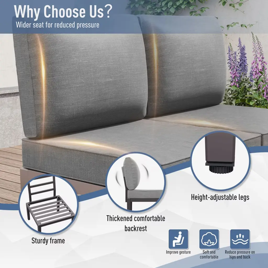 This ALAULM outdoor furniture patio set effortlessly elevates your lifestyle! Featuring an upgraded powder-coated metal frame, high-density cushions with zippers, and modular sofas for flexible arrangements, this premium patio sofa set addresses common outdoor furniture issues, delivering a delightful living experience! Please Note: The product will be shipped in 6 separate packages, and delivery times may vary.