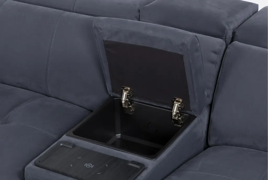 Self-care can be a part of your everyday life with our indulgent Alessa zero gravity power reclining sectional with console. The modern-chic design boasts high-performance suede-like fabric that is soft and easy to care for. Zero gravity power reclining provides five-star lounging that allows you to enjoy multiple levels of relaxation, while promoting health and wellness. For extra support, the headrests offer an adjustable feature, so you can comfortably watch TV, read or nap. A console and USB ports enhance your entire experience.