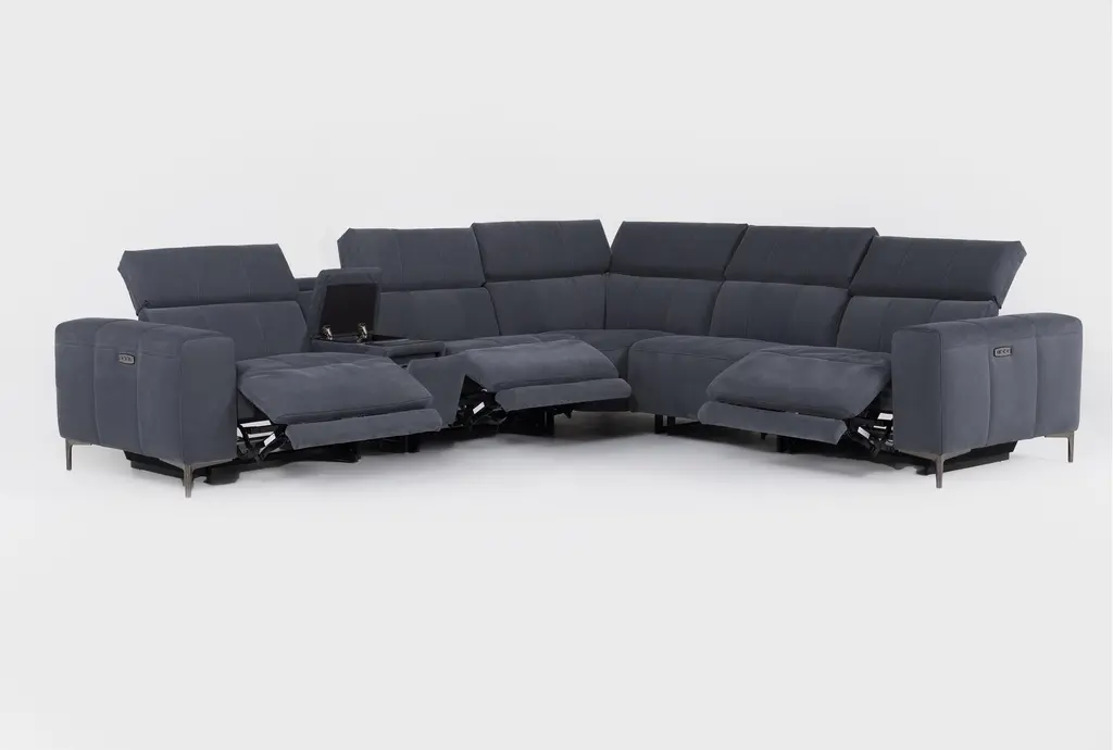 Alessa Ii Steel Grey Fabric 127" 6 Piece Power Zero Gravity Reclining Sectional With Console