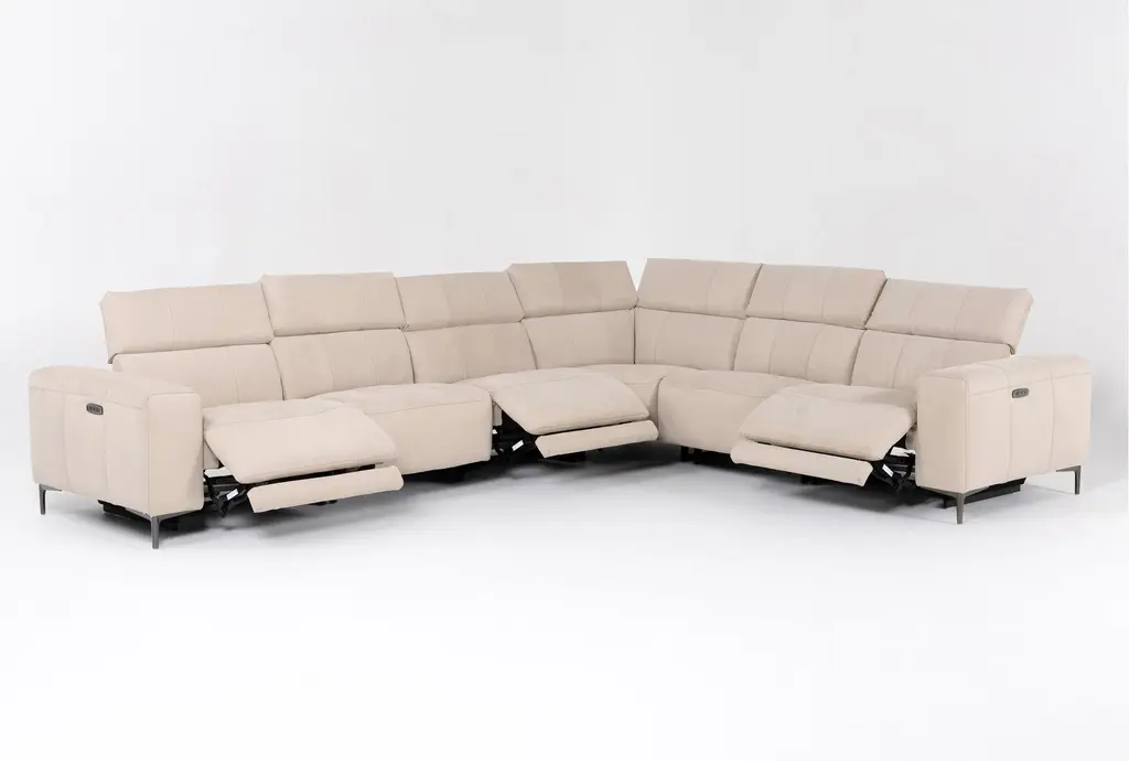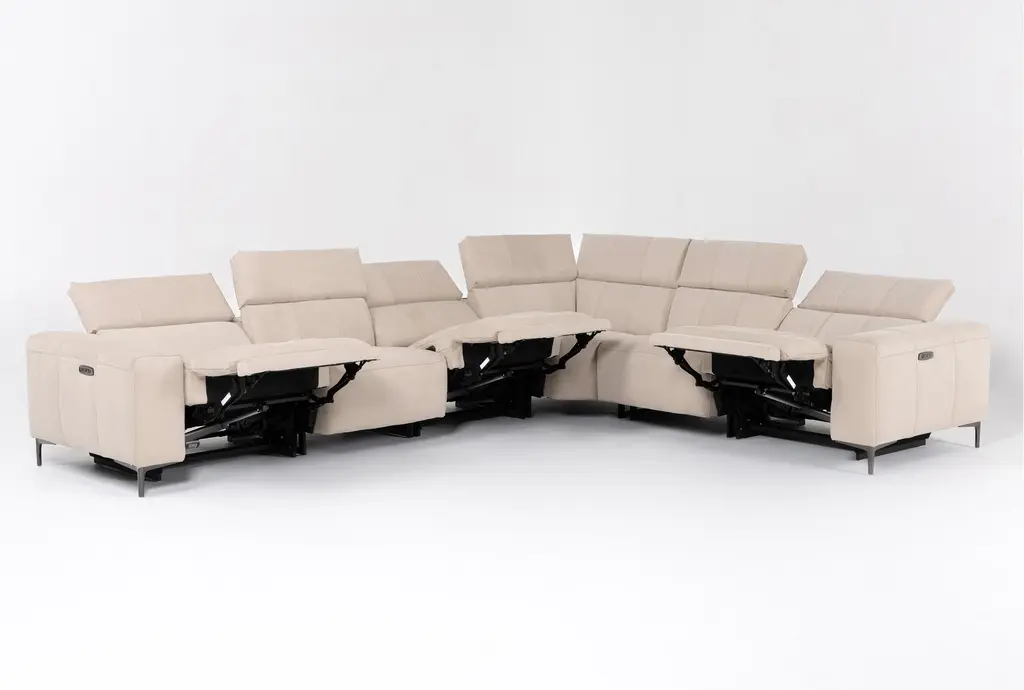 Alessa Ii Stone Fabric 127" 6 Piece Power Zero Gravity Reclining Sectional With 2 Armless Chairs