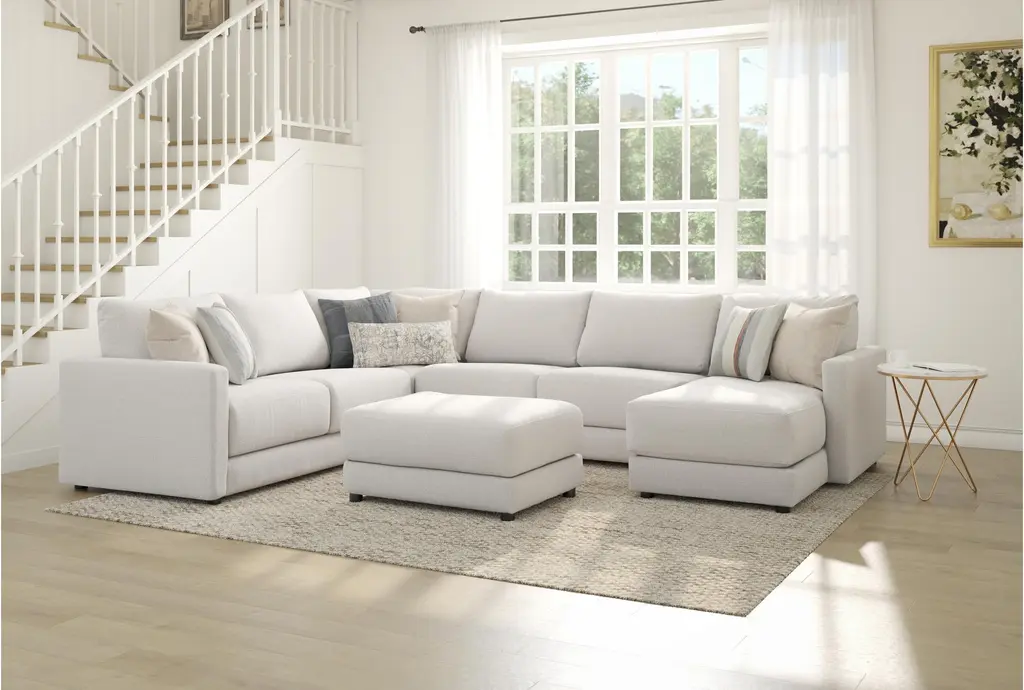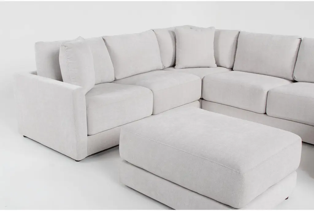 Alicia Greige Chenille 140" 4 Piece Sectional With Right Arm Facing Chaise & Ottoman
