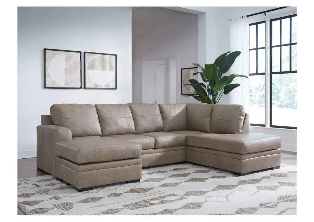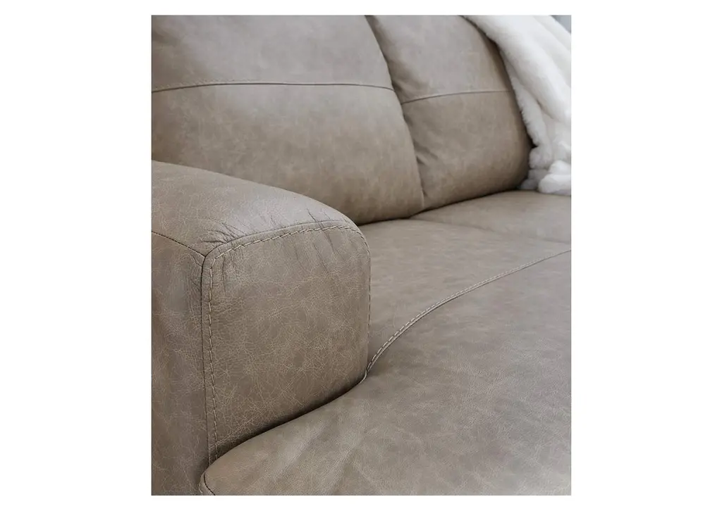 Bring a touch of indulgence and affordability into your home. The Amuleto sectional with chaise prioritizes comfort to fit your modern lifestyle, with richly neutral leather and faux leather upholstery embracing you in irresistibly soft seating. It's a chic, contemporary way to complete your home's entertainment area. Weight 322.000 lbs. (144.9kgs.)