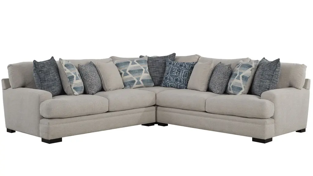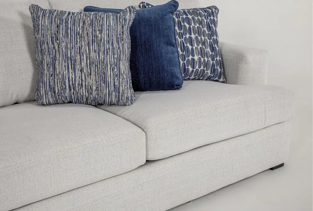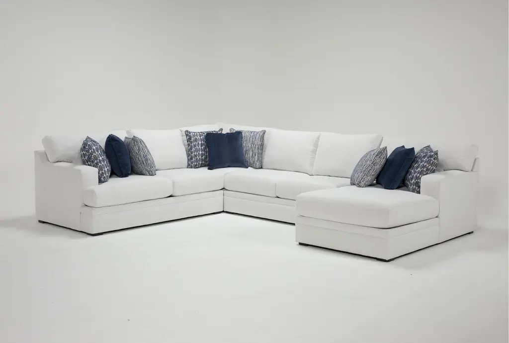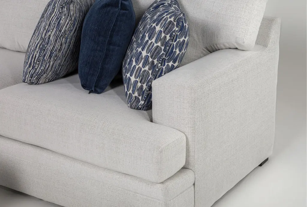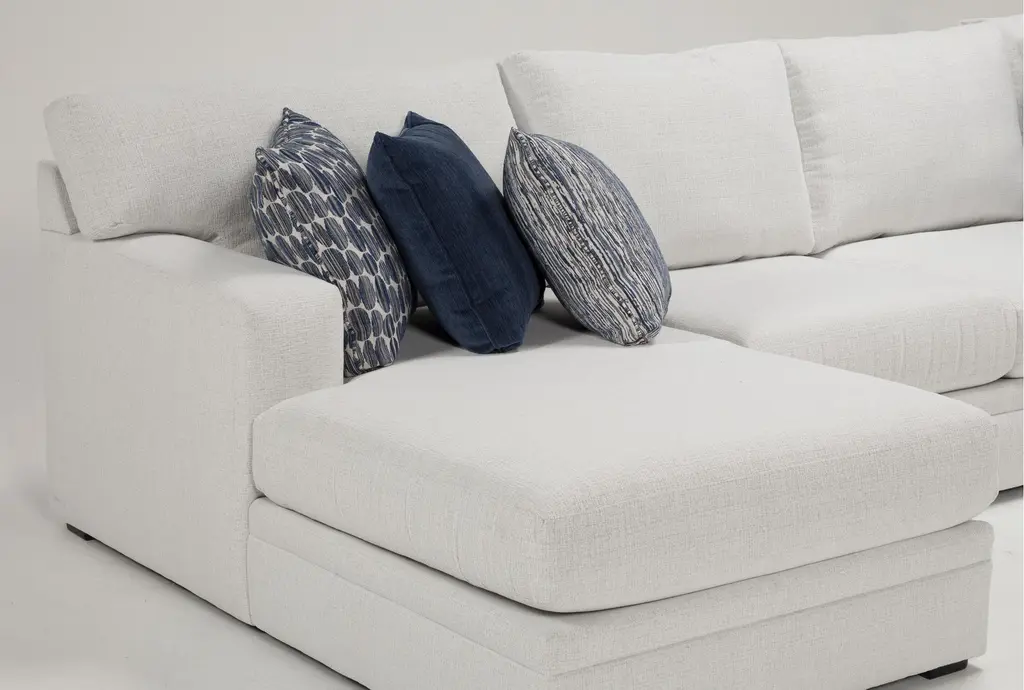 Designed and made exclusively by Living Spaces with comfort, style and practicality in mind, our Anacapa sectional with ottoman checks all the boxes. Modular in nature, you'll find small and large configurations to fit your space perfectly. Deep and plush seating is hard to resist, while accent pillows add all that jazz and pizzazz with a timeless blue palette you'll love. Best of all, the high-performance, solution-dyed polyester cover is durable, bleach cleanable and fade resistant.