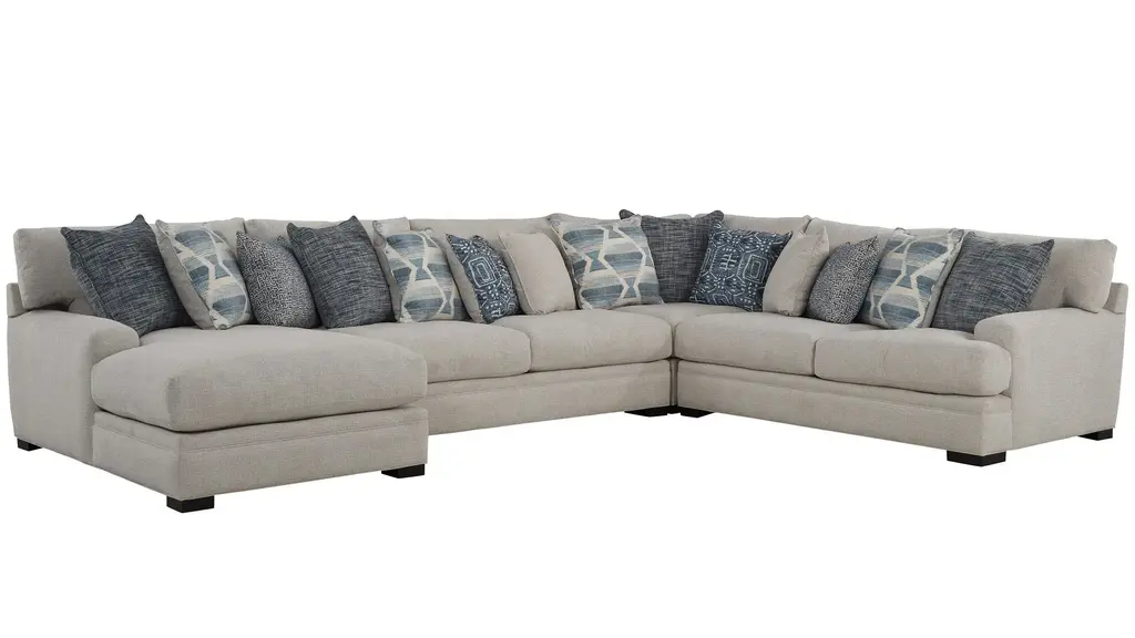 Anacapa Natural Ivory Fabric 141" 4 Piece Sectional With Left Arm Facing Chaise & Ottoman